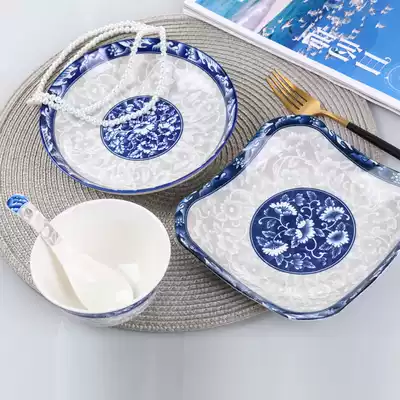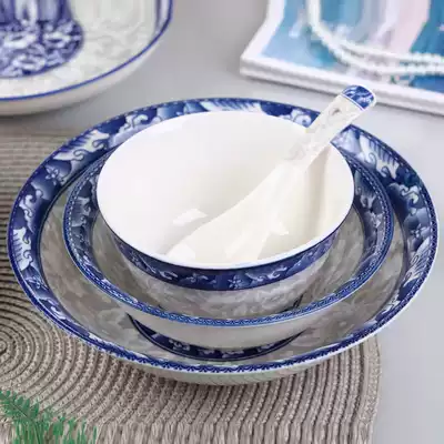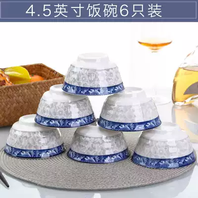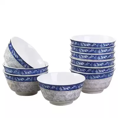 Rice bowl household ceramic blue and white bowl Chinese drinking soup bowl eating noodle bowl tableware combination rice bowl porcelain bowl can Weibo