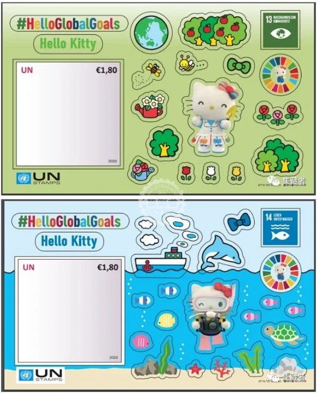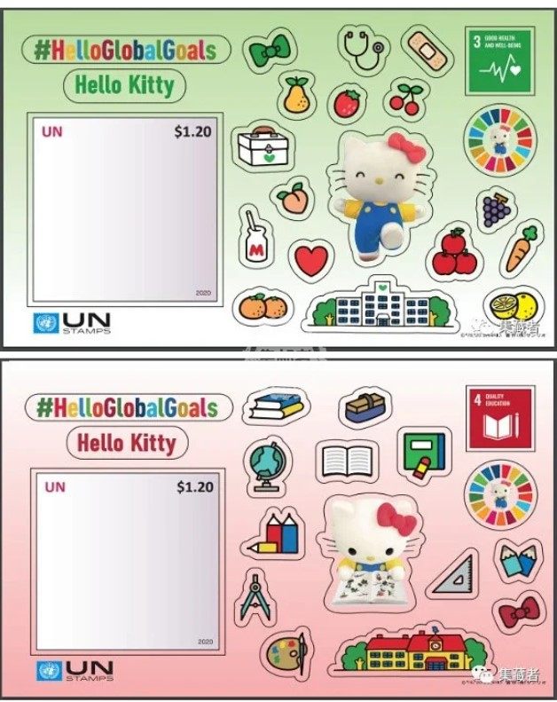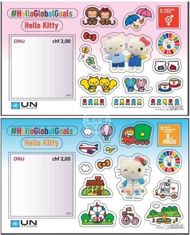 (Philatelist) United Nations Hello Cartoon Stamps Hello Kitty Stamps Set of 6