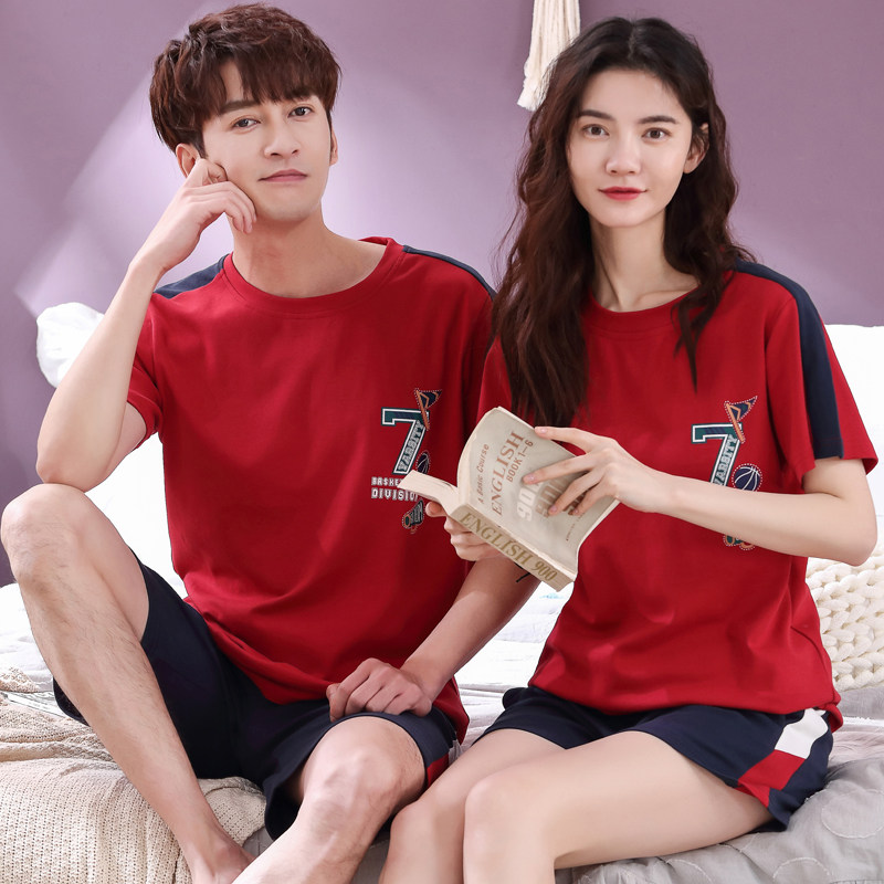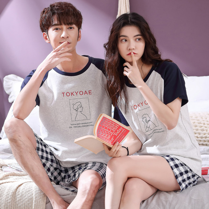 Couple pajamas lady cotton summer short sleeve shorts men summer thin cotton loose home suit two pieces