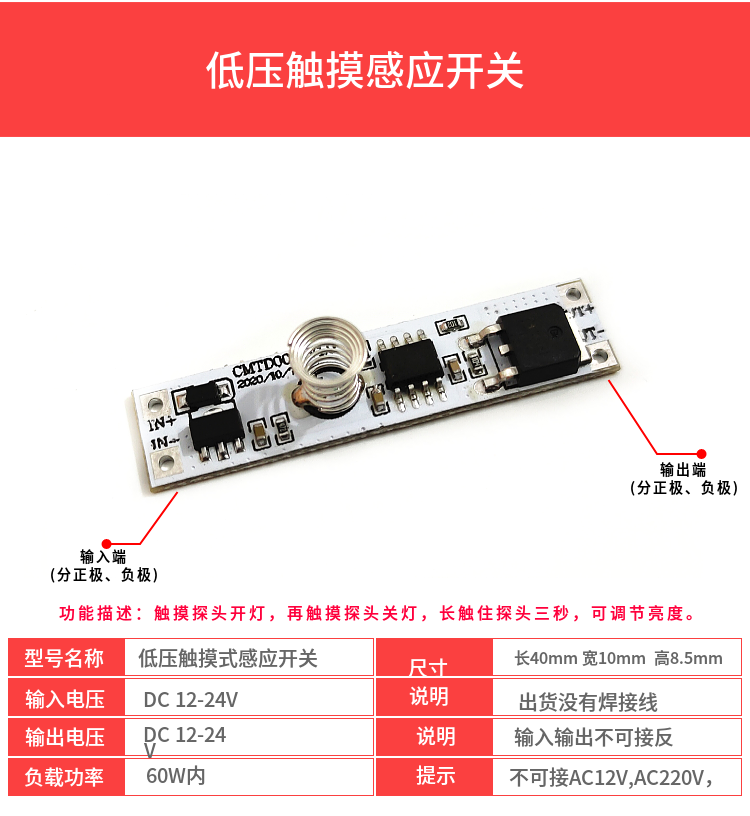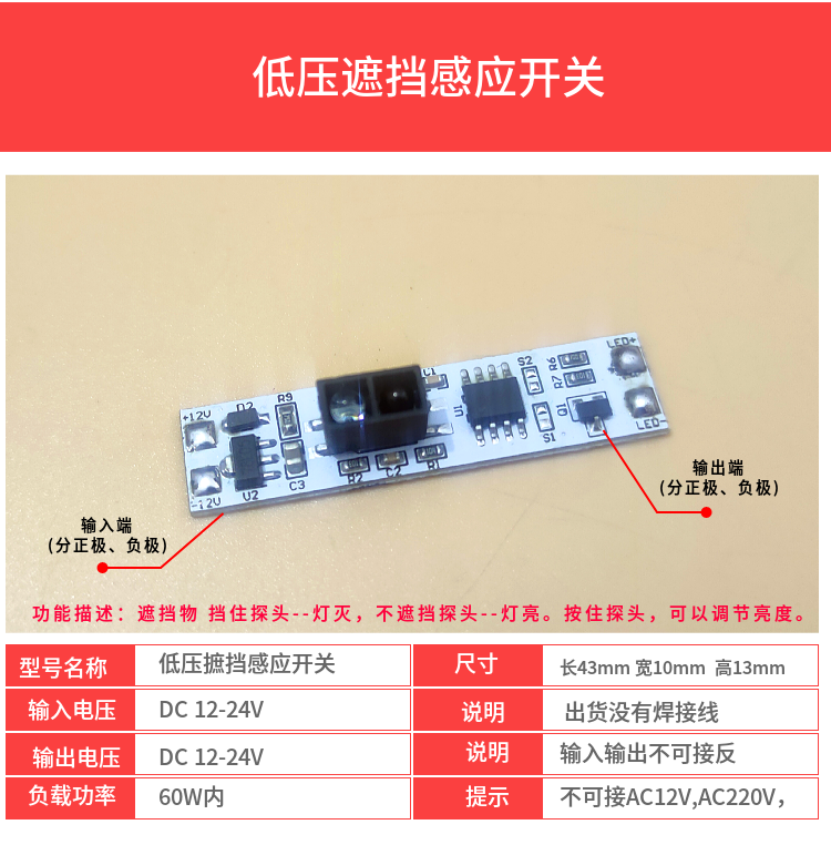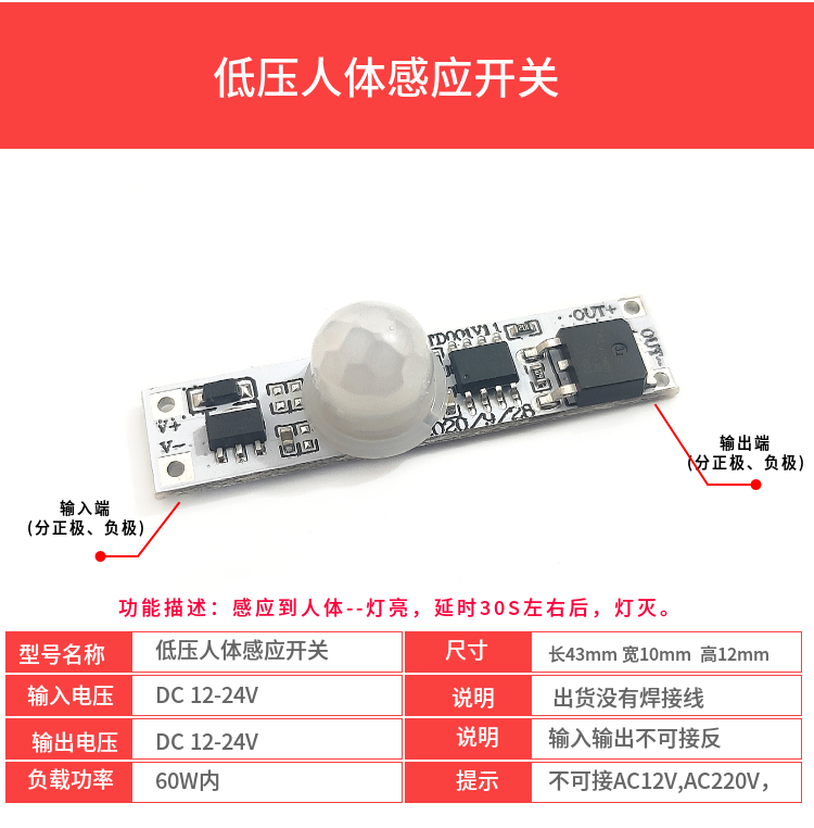 Hand sweep induction switch module 5V12V24V cabinet closet LED light human touch switch module