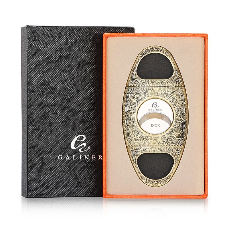 GALINER cigar scissors stainless steel sharp blade cigar cutter pliers round cigar scissors cutting tool leather case