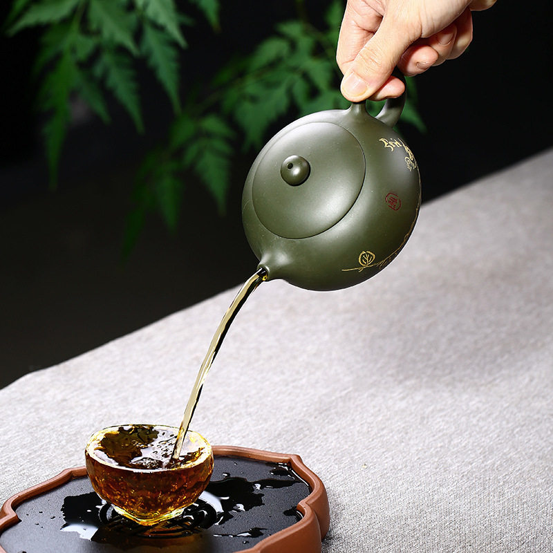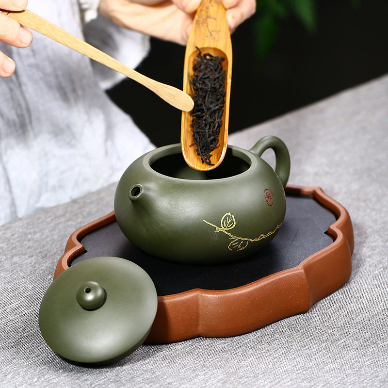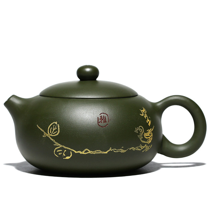 Yixing purple sand famous pure handmade elegant Xishi purple sand raw ore green mud Yang Feinan made flat Xishi teapot