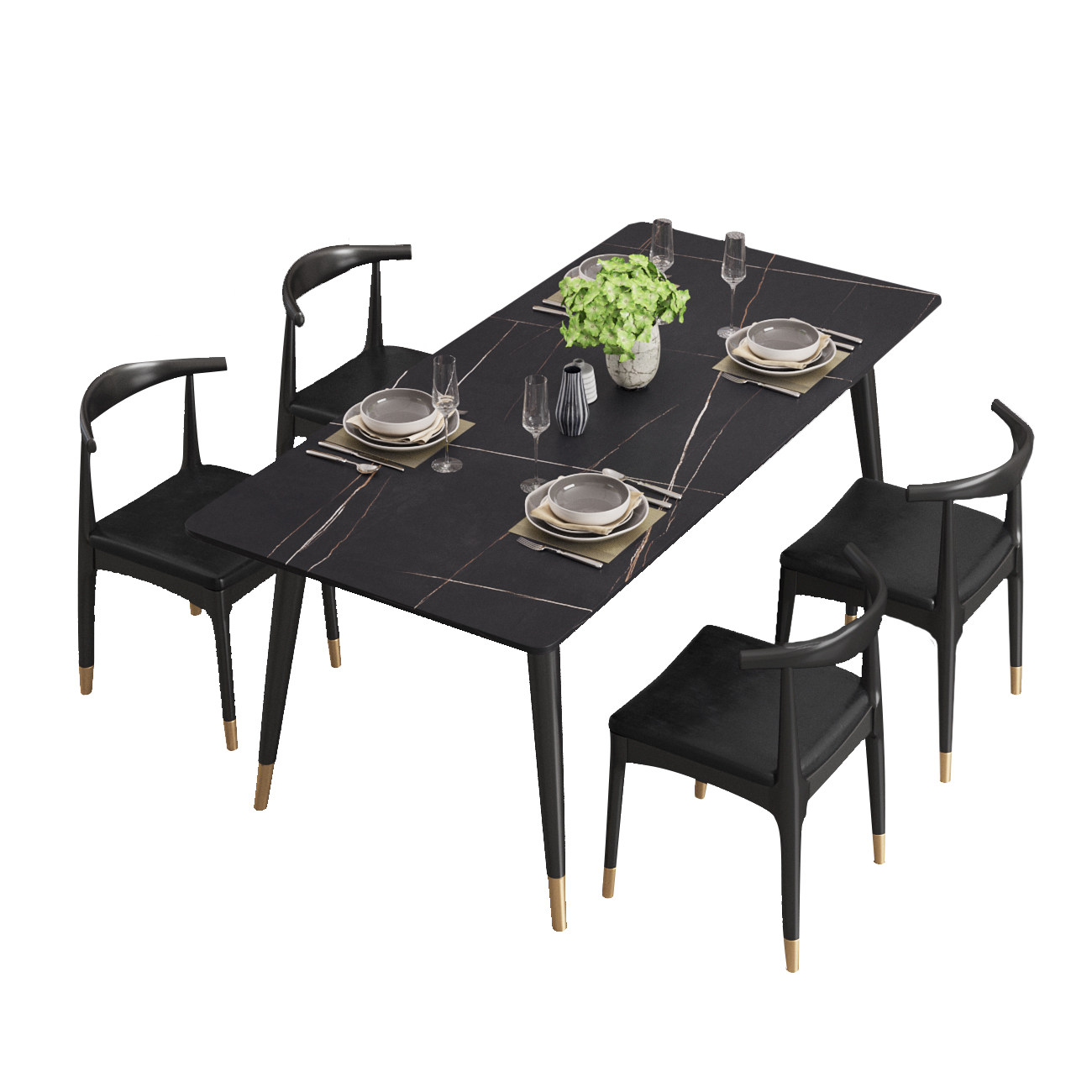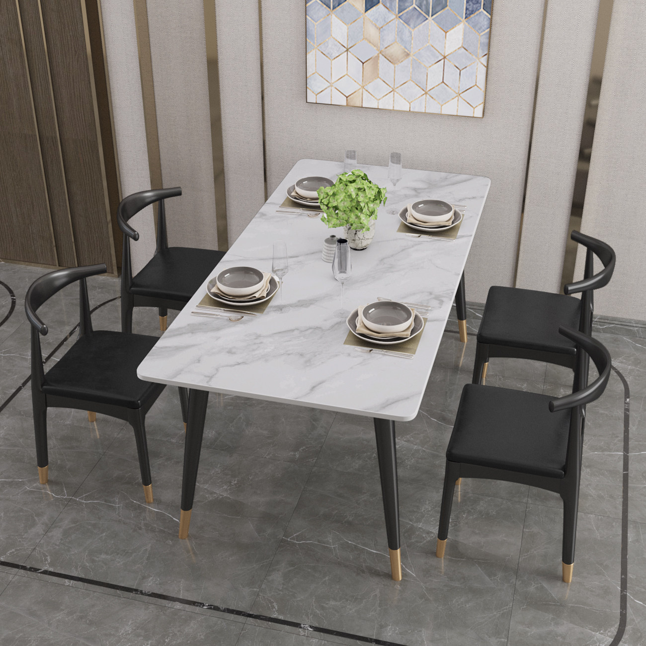 Italian Plank Dining Table Modern Light Luxury Small Household Nordic Marble Dining Table and Chair Combination Rectangular Minimalist