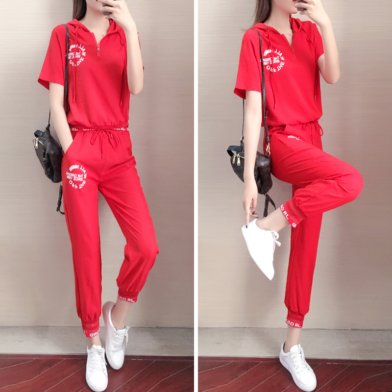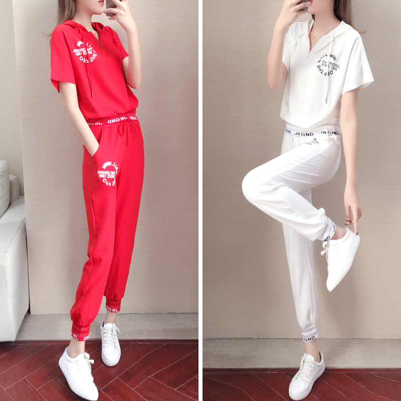 Sports suit Women Summer 2022 new Korean version loose Lean Fashion Foreign Pie for Aging Running Casual Wear two sets