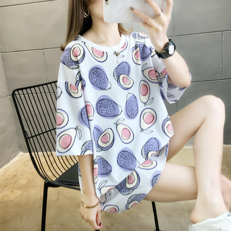 Pregnant woman short sleeve T-shirt female loose medium long version short summer half sleeve spring summer hit bottom jacket Korean version summer dress pure cotton