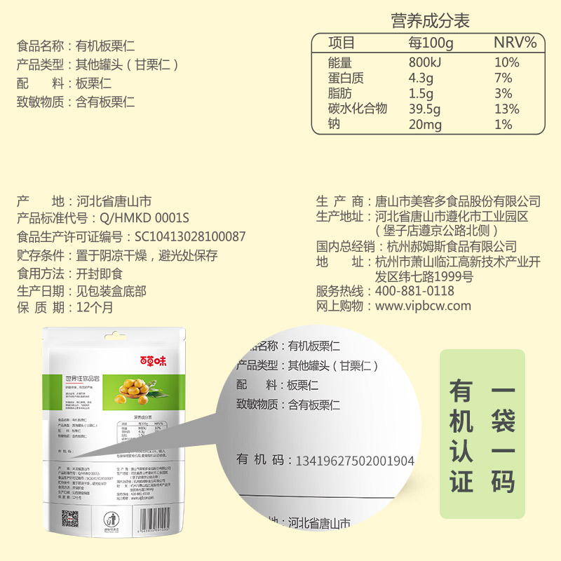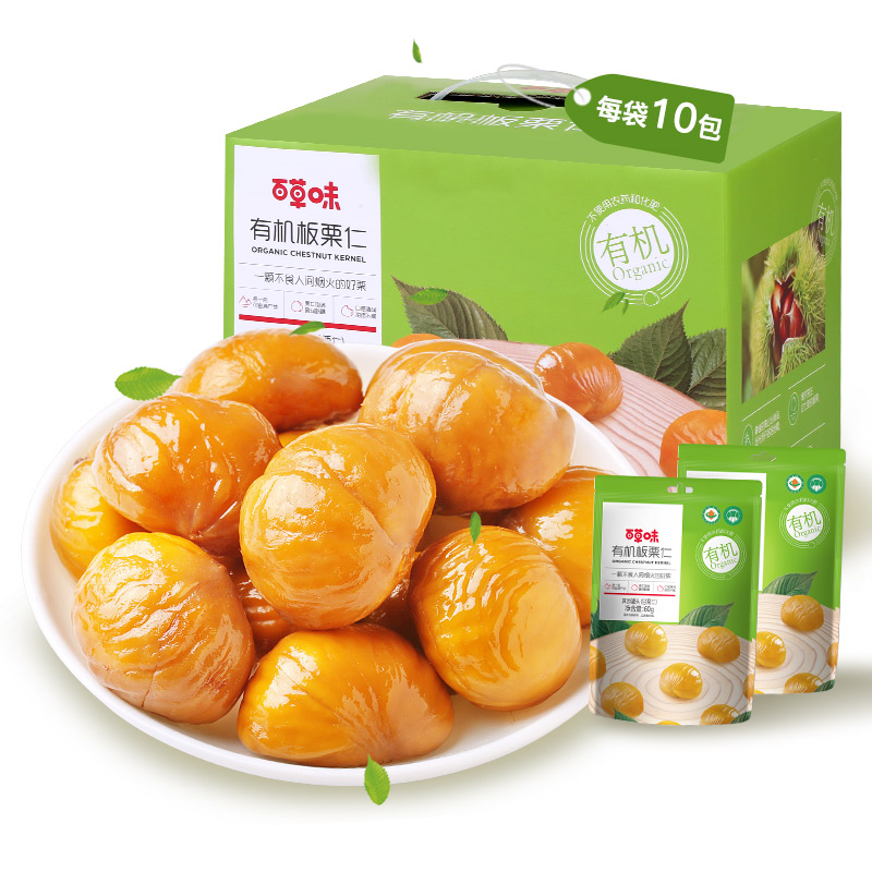 (Baicao Flavor-Organic Chestnut Kernels 600g 10 bags) Nut snacks Cooked chestnut kernels Ready-to-eat hairy chestnuts gift box