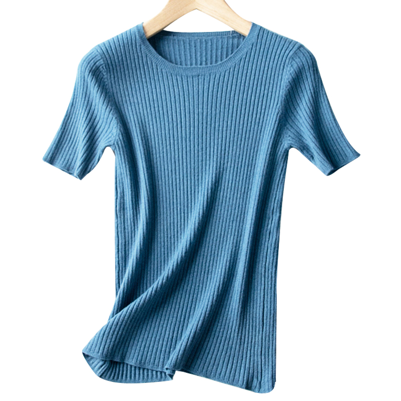 2023 Summer Thin Cover Head Short Sleeve Knit Undershirt Style Commuter Woman T-shirt Short Korean version round collar half sleeve-Taobao