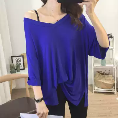 Modal short sleeve t-shirt women fat mm Korean summer dress large size loose slim vneck soft hanging base shirt top