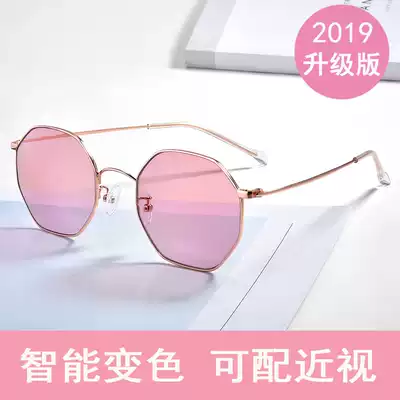 Sensitive color-changing glasses sunglasses anti-blue ultraviolet myopia sunglasses women can be equipped with degrees Korean version of Tide Ultra Light