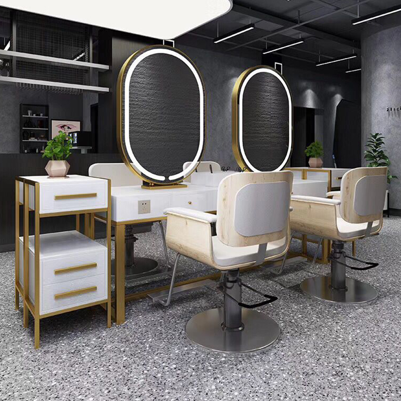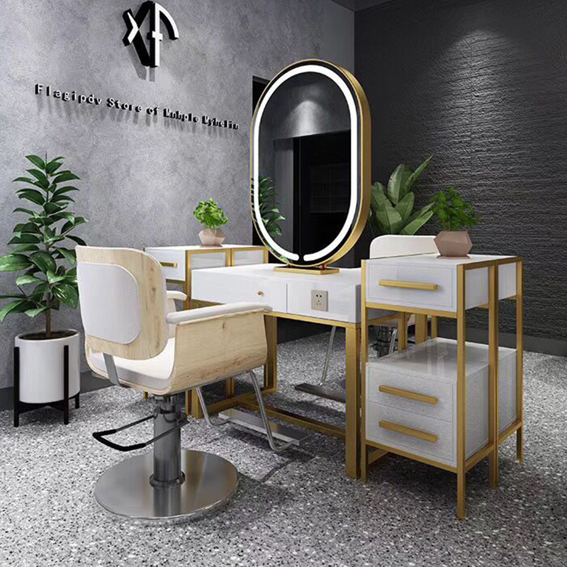 Net Red Beauty Hair Shop Mirror Desk Hair Salon Special Hot Dye Floor Single Face Double Sided Mirror Table LED Mirror With Lamp Beauty Hair Lens