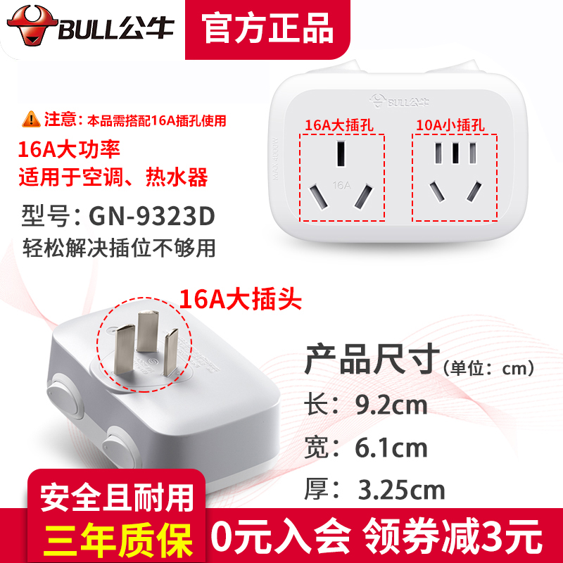 Bull 16A turn 10A socket High power wiring board 16 An conversion extension cord Water heater Air conditioning Special insert