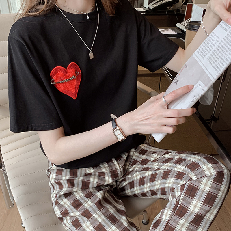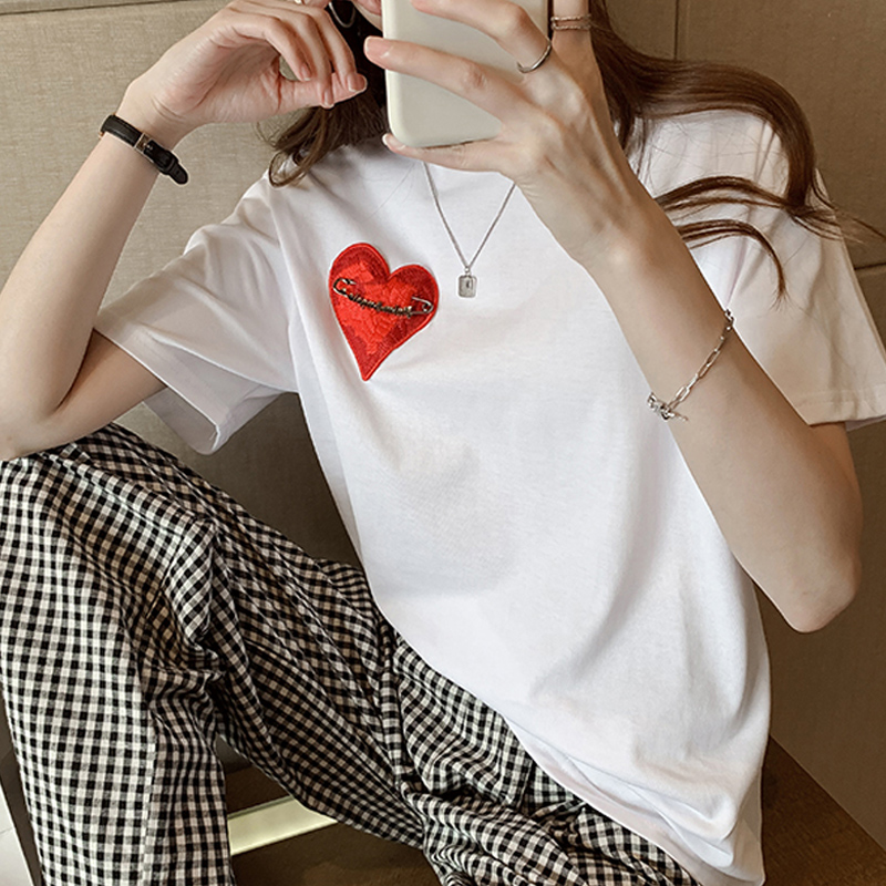 Love embroidery T-shirt women's 2021 summer new loose and wild short-sleeved top thin Western style half-sleeve base shirt