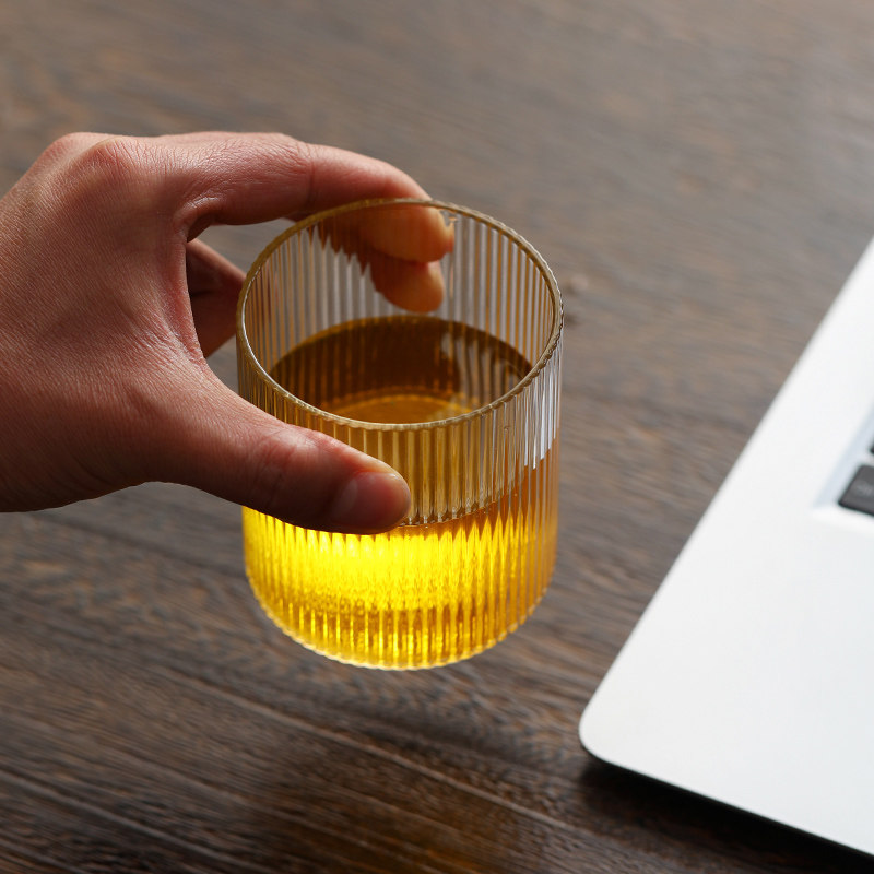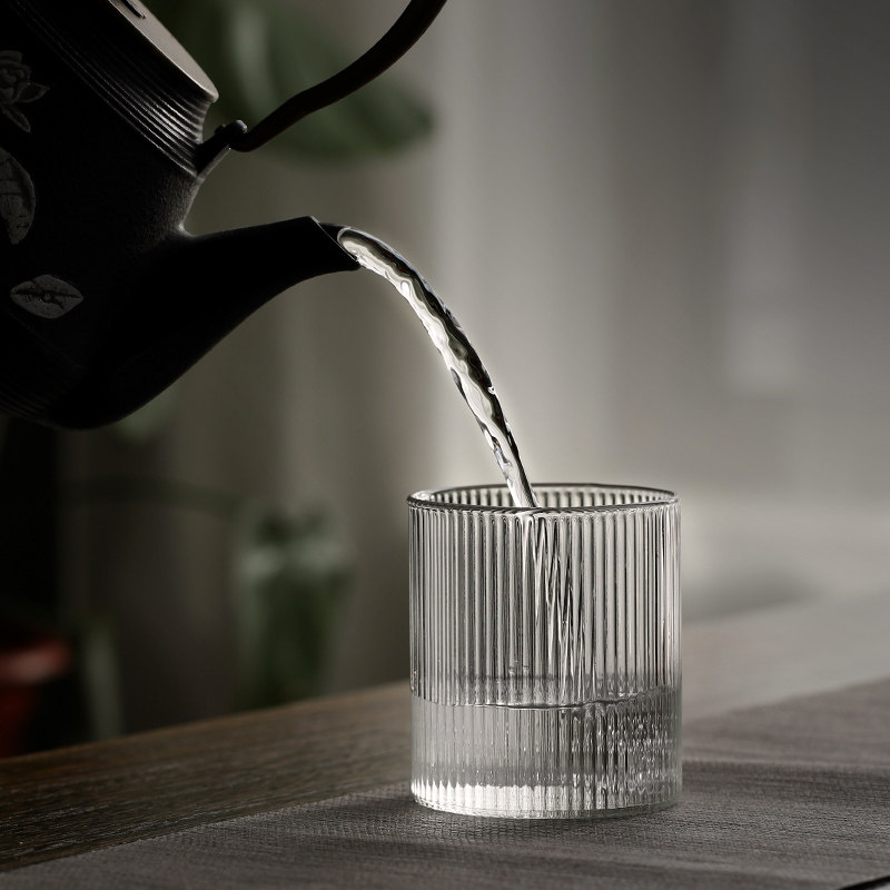 Vertical striped glass cup Simple fresh Forest ins wind Nordic drinking glass 300ml Transparent European cup