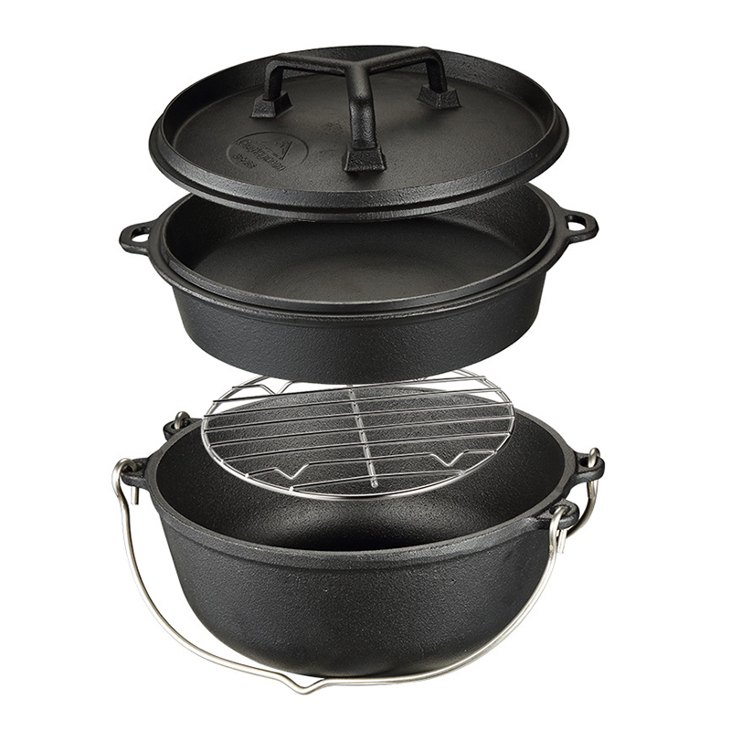 CAMPINGMOON Coman outdoor camping cast iron stewed Dutch pot Japanese-style frying pan three pieces of cast iron roasting pot