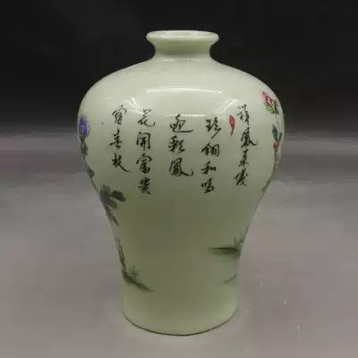 Qing Tongzhi Pastel Xiangfeng Laili Peony Flower Color Plum Bottle Antique Antique Porcelain Living Room ornaments Collection