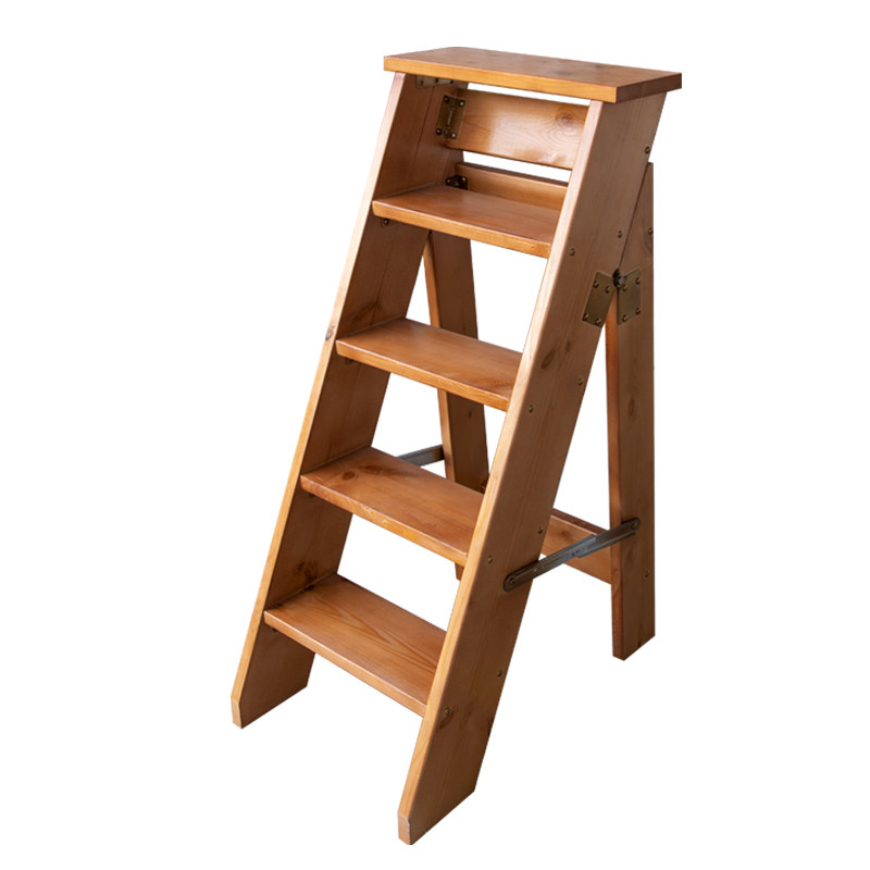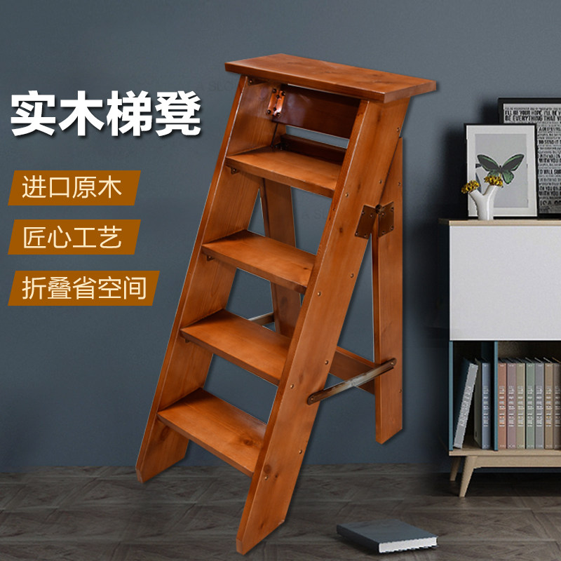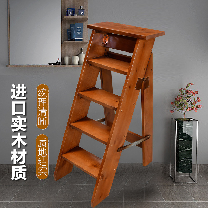 Solid wood climbing folding three-four-five-step one-sided herringbone ladder storage flower stand custom-made steps