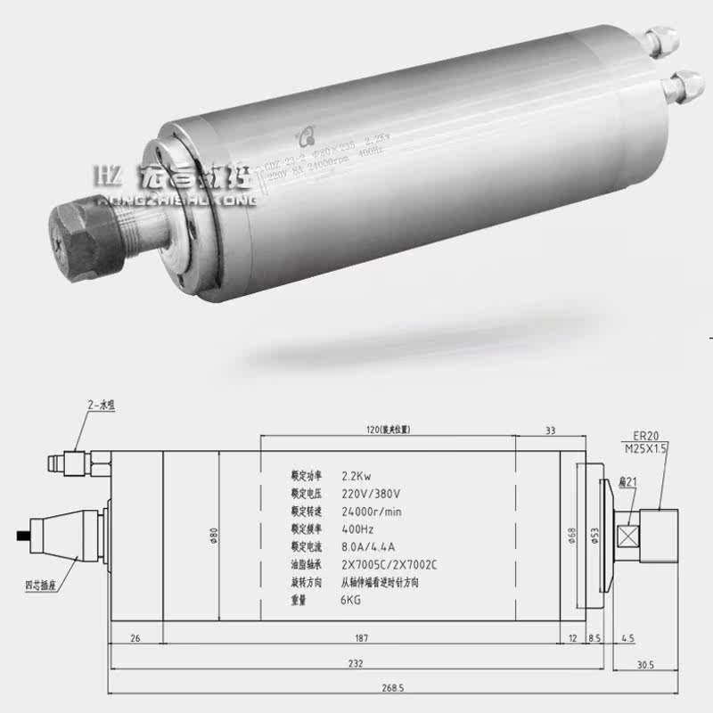 Hanqi GDZ-23 diameter 80mm2 2kw high-speed electric spindle ER20 woodworking special motor engraving machine accessories