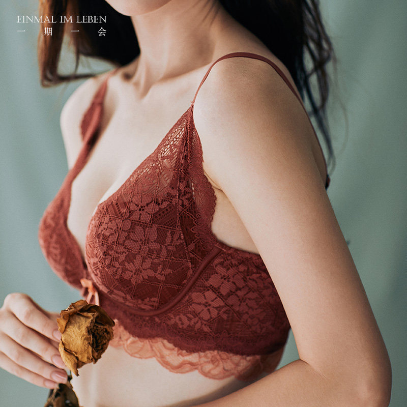 Bourgis Milk Tea Small Chest Salvation Stars Poly up Teenage Girl No Steel Ring bra Sweet Lace Lingerie