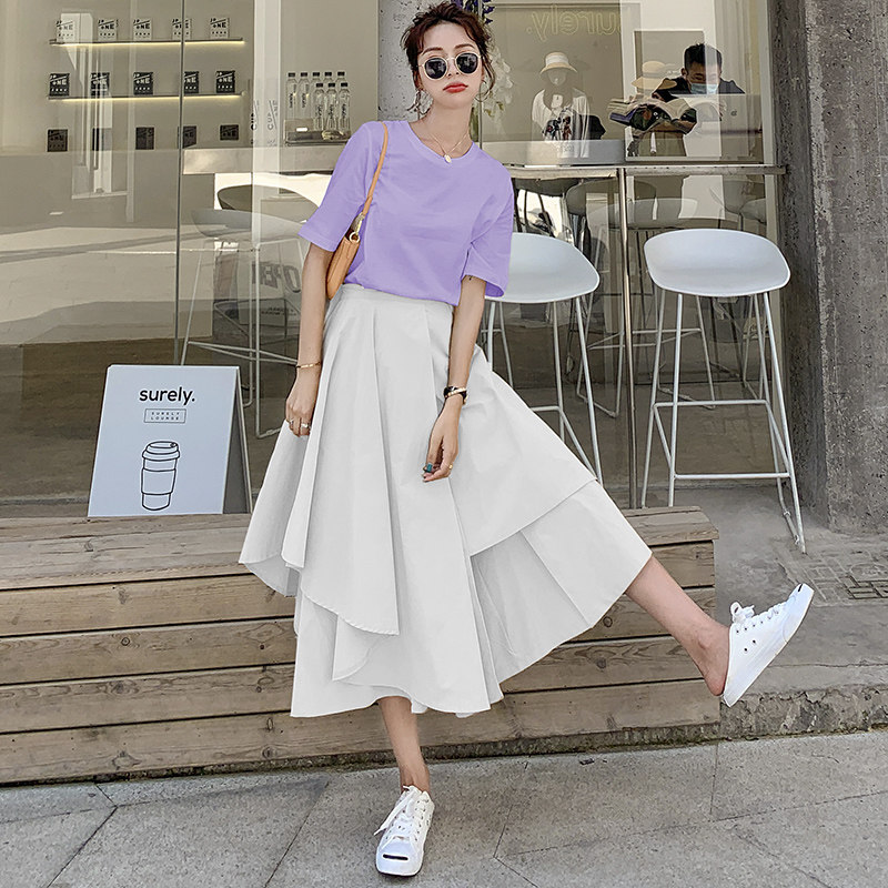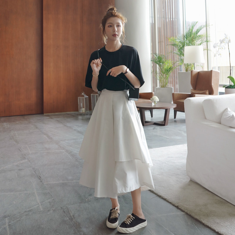 2022 summer new style cover belly and age reduction black and white two-piece Western style Korean version casual slim skirt suit female