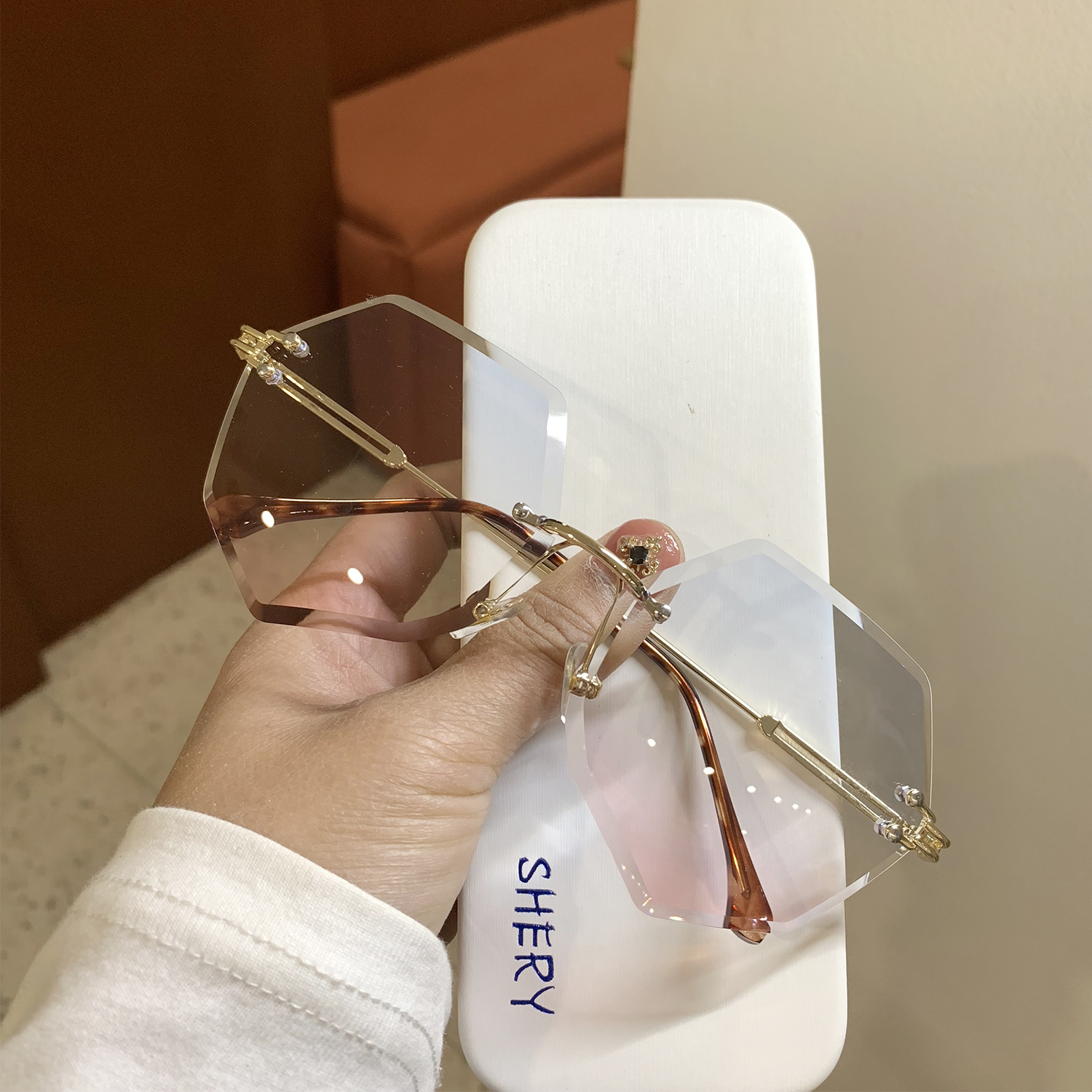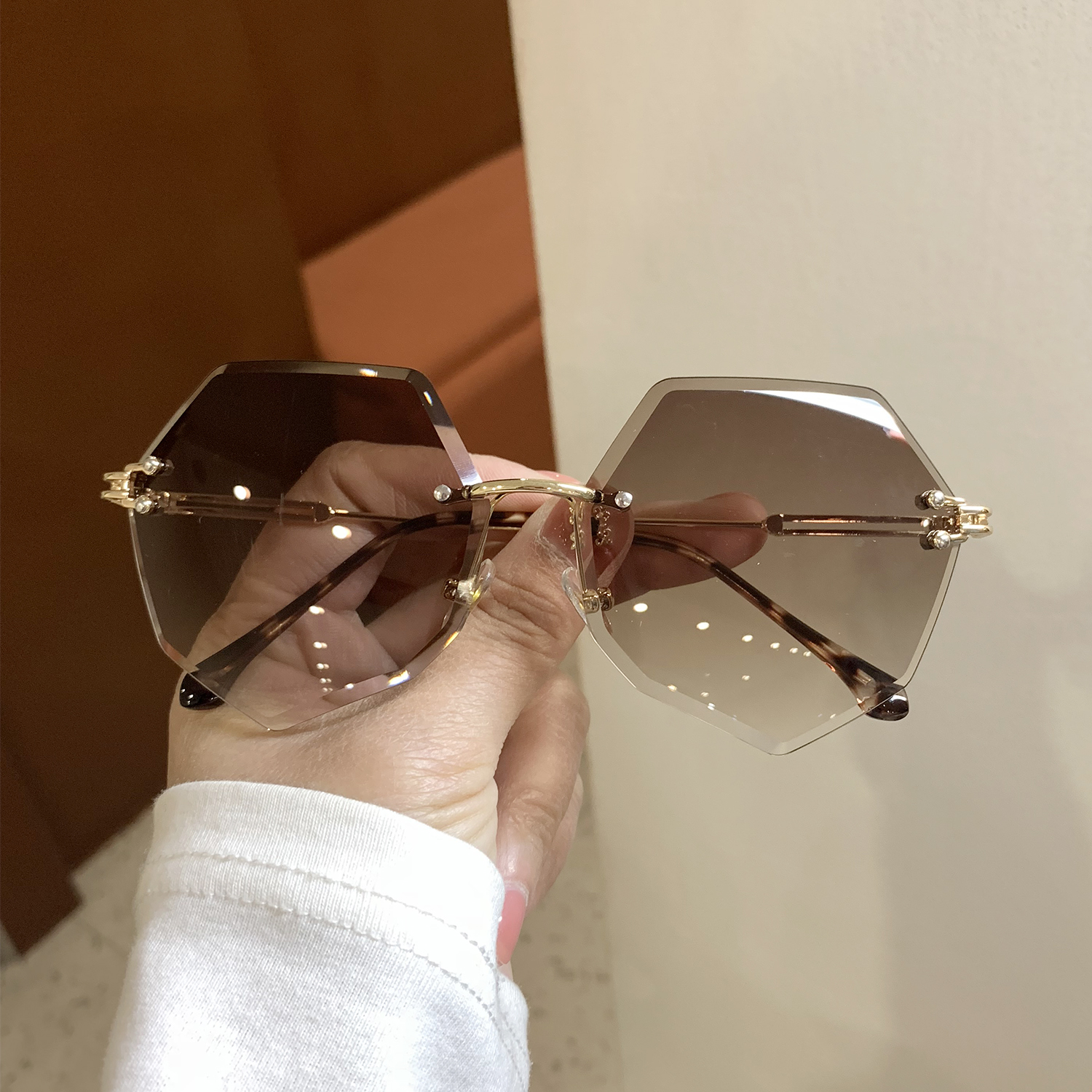 Frameless net red round face glasses fashion ins sunglasses women 2020 new tide UV sunglasses women