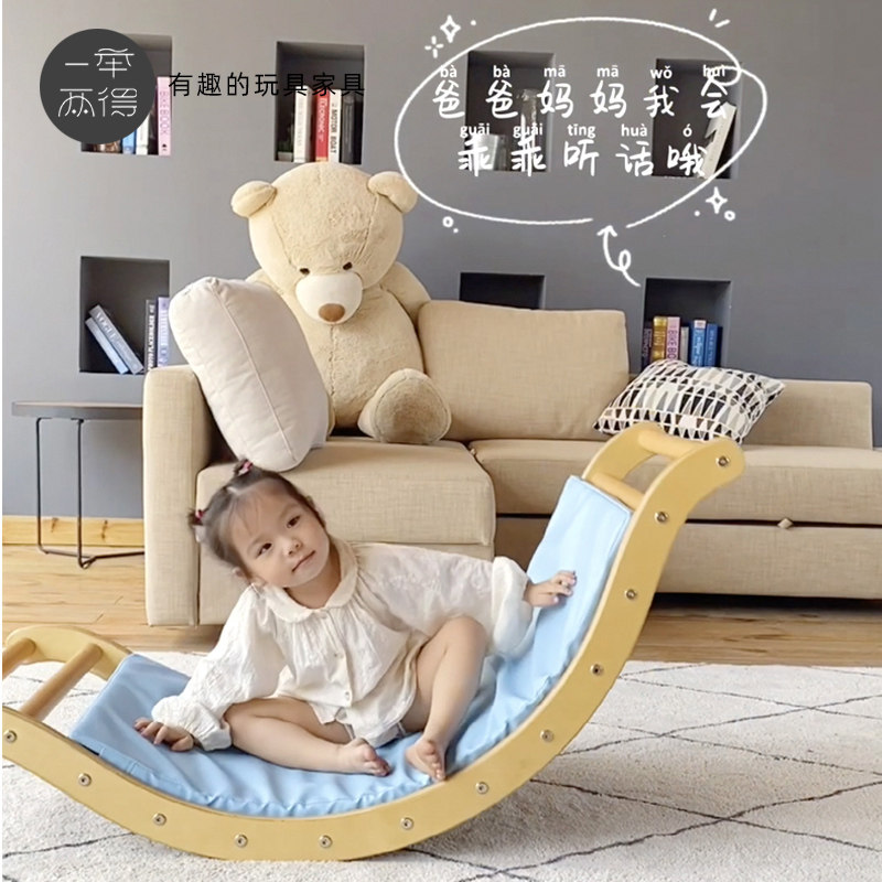 WOBOINNO CHILDREN BALANCE PLATE Home Indoor climbing frame Sliding Slides Wooden Seesaw Seesaw Small Sensory Integrated Training