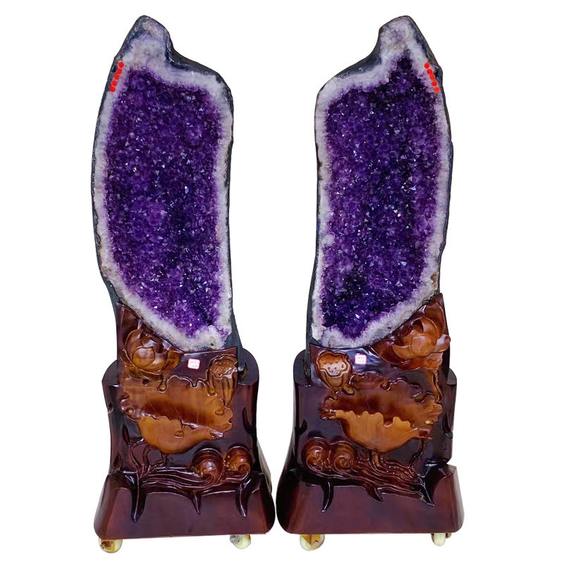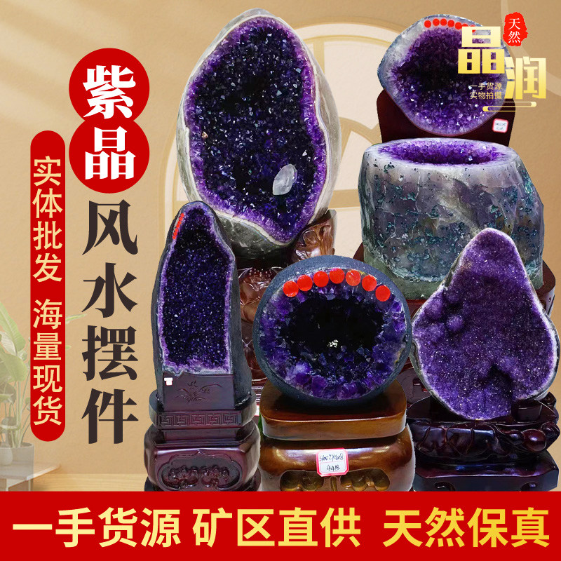 Amethyst Cave Cornucopia Money Bag Huangjing Cave Dinosaur Egg Amethyst Cluster Smiling Ornament Heart-Shaped Ornament Watch the video for details. One item, one picture, select the goods and contact customer service before placing an order.