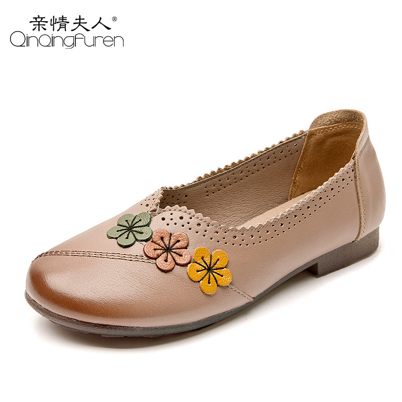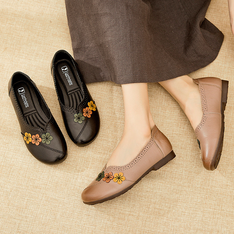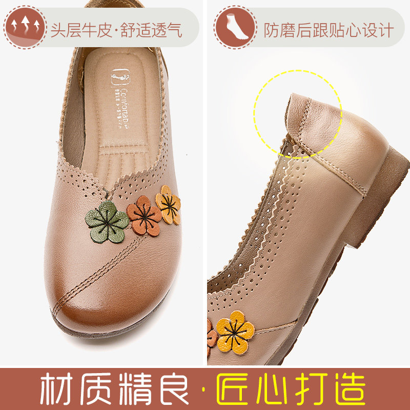 Large size middle-aged mother shoes soft bottom women's comfortable spring and autumn leather tendon bottom grandma single shoes elderly leather shoes flat bottom