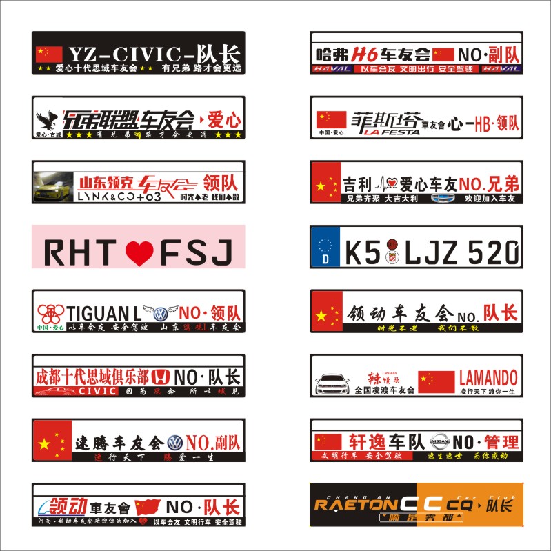 Custom car number plate Car billboard Biker Club team small deck sticker Club 4S car dealer car sticker