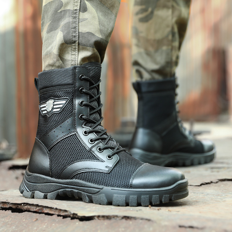 New combat training boots men's summer ultra light combat boots breathable shock absorbing tooling boots Martin boots High cylinder Security shoes women