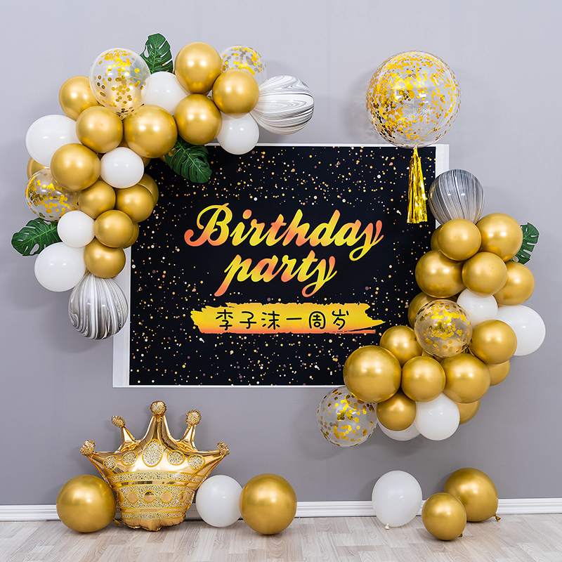 Black Gold Balloon Boy Baby 1 Week Birthday Placement Scene Decoration Background Wall Poster Custom 100 Days Banquet 2