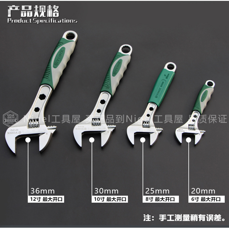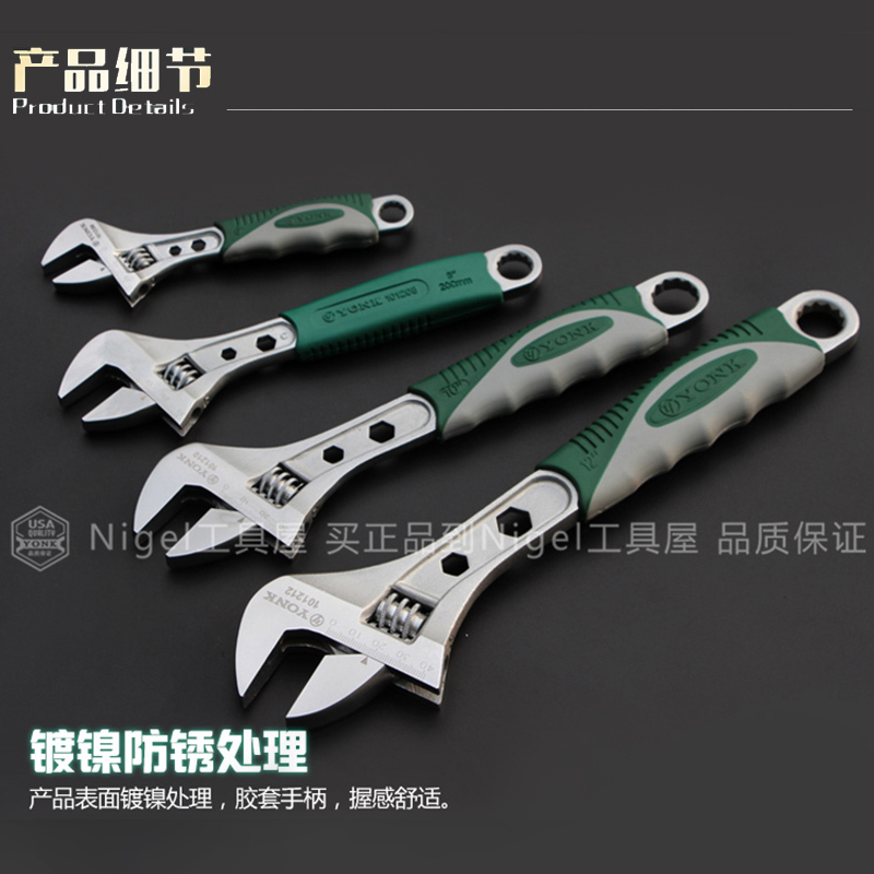 York Activity Wrench 8 Inch 10 Inch 12 Inch Home Wan Wrench Rubber Shank Live Mouth Wrench Adjustable Wrench