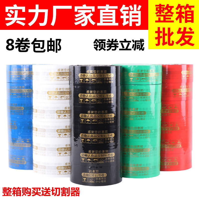 Adhesive Tape Express Package Seal Box Duct Tape Large Roll Glued Paper Custom Logo Printed Word Rubberized Paper Transparent Whole Case Batch Seal Rubber Roll