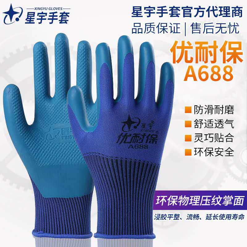 Xingyu excellent treasure gloves 688698 latex physical embossing wear-resistant non-slip breathable labor protection gloves