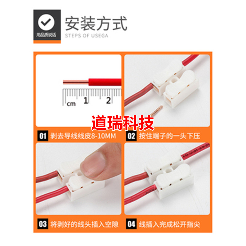 Wire connector 2-bit push-type terminal block LED lighting terminal CH-2 quick docking (50 pieces)