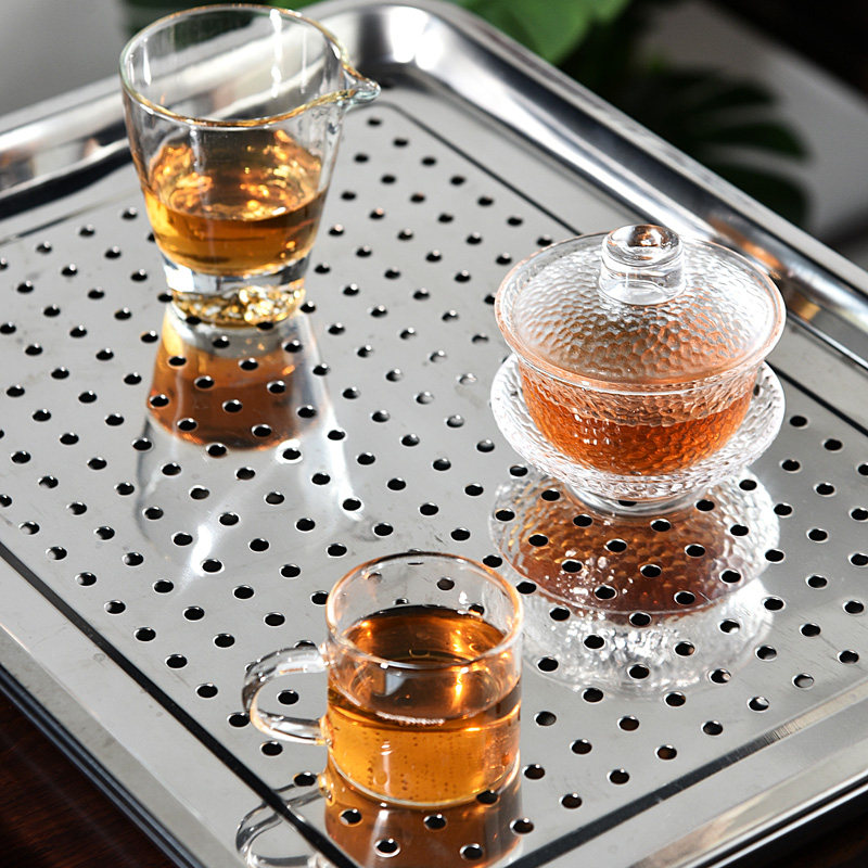 Home Stainless Steel Tea Tray Water Storage Tea Nursery Drain size Number of tea set Teatable Set of water storage water drainage rectangles