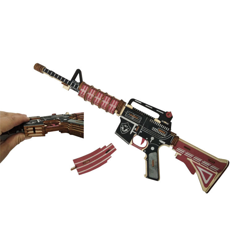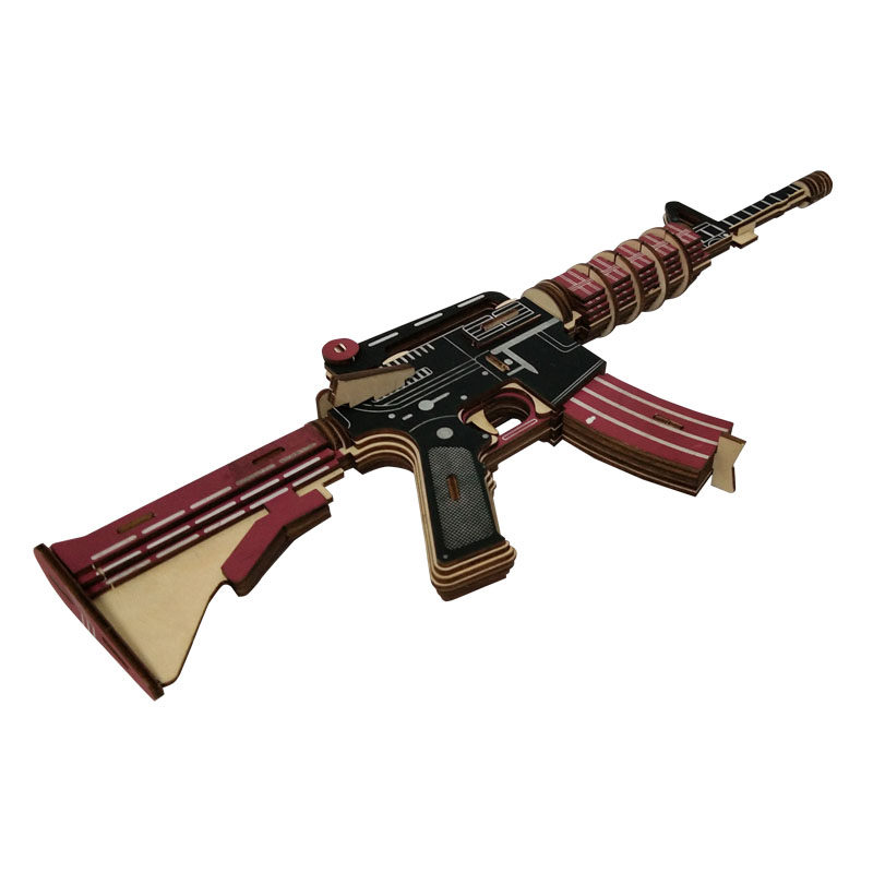 Eat Chicken Toy Gun M416 Assault Rob Model Assembled Wooden Jigsaw 3d Solid Wooden Diy Hand Crafted-Taobao