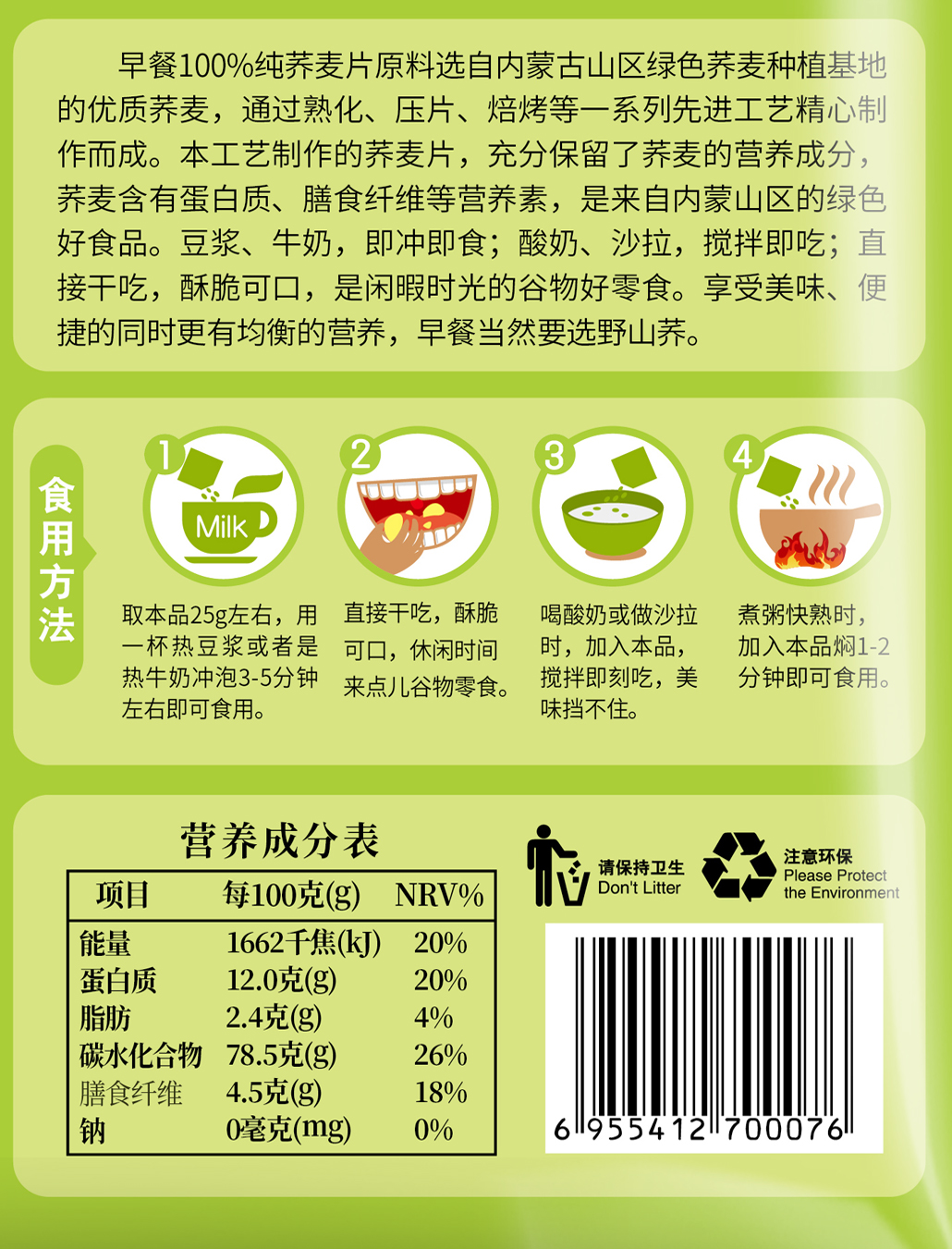 Wild mountain buckwheat slices breakfast cereal ready-to-eat fast-food lazy food sugar-free Inner Mongolian buckwheat cereal 500g