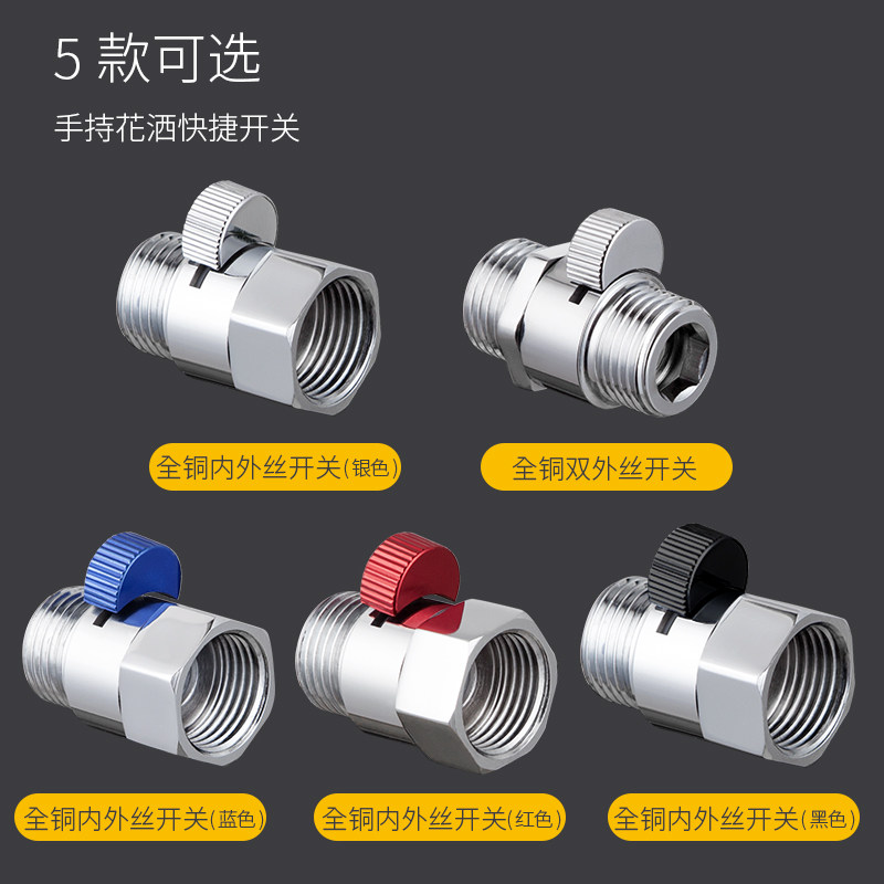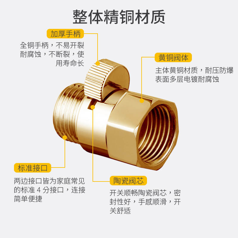 Full copper shower head switch water stop valve shower handheld nozzle straight off valve 40% inside and outside wire quick open joint regulating valve