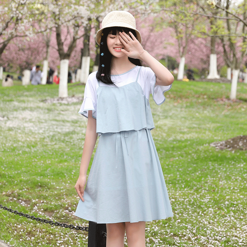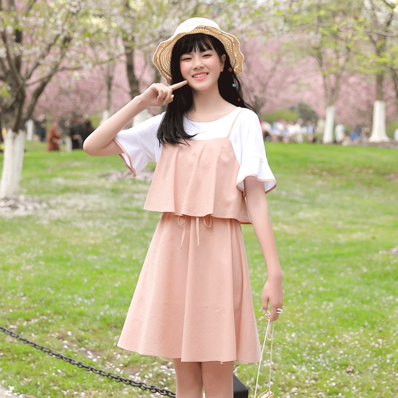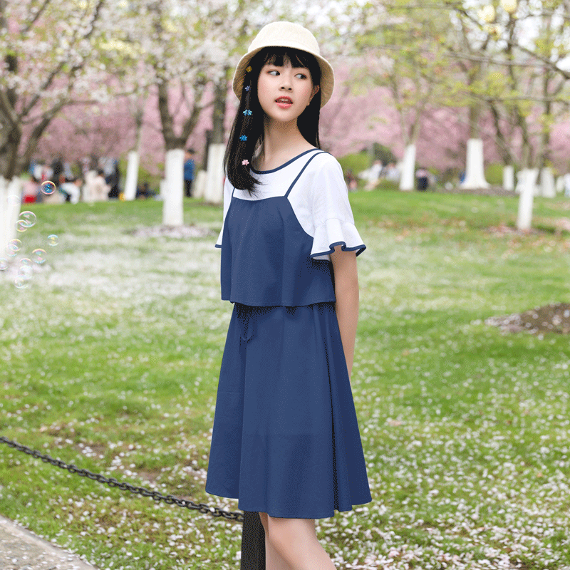 Girls Summer Dress 12 - 15 year old Dress Boy 16 Sweet Girls College wind short sleeves middle high school dress