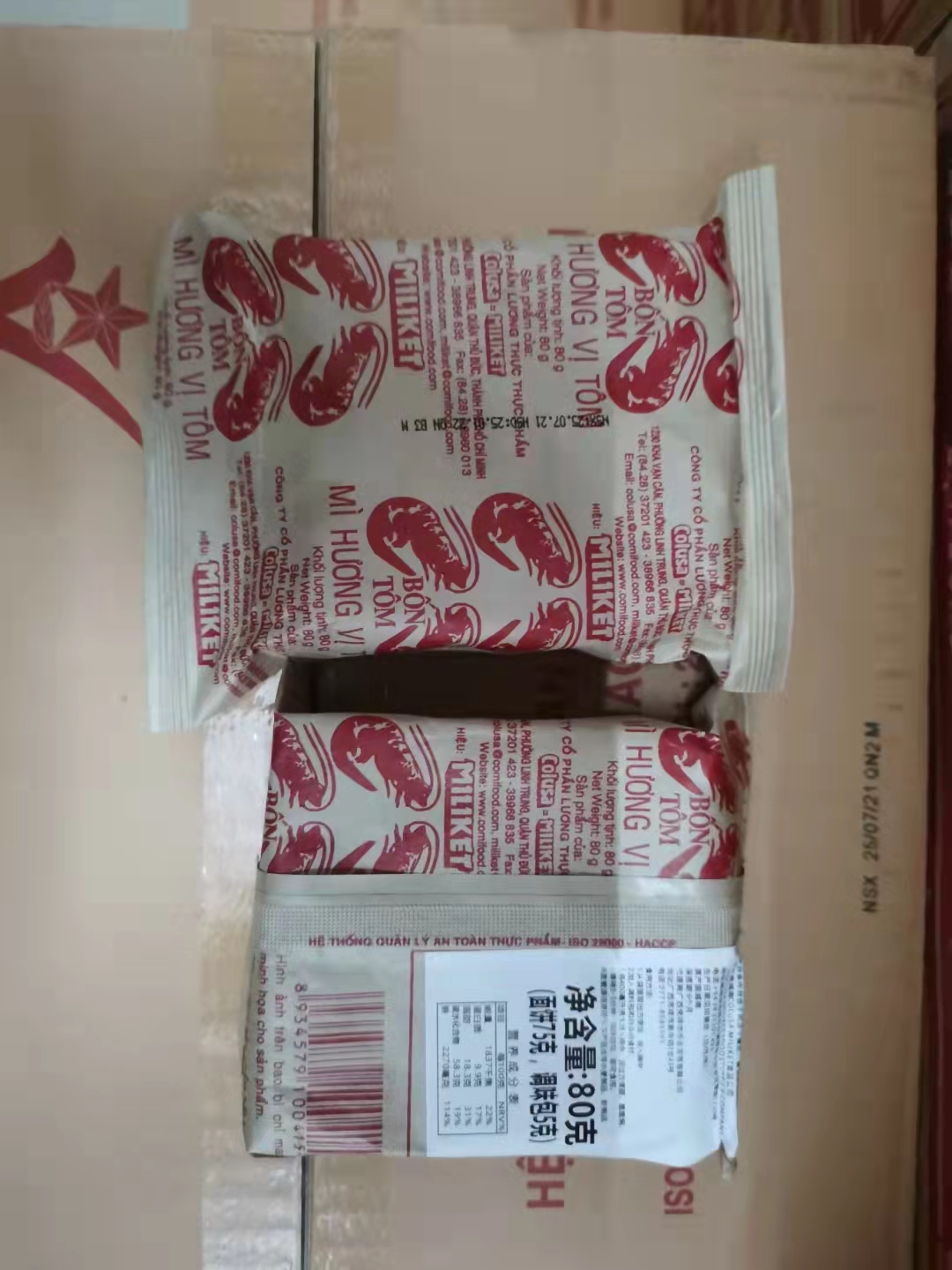 Vietnamese paper bag noodles old MILIKET shrimp-flavored instant noodles 65gx30 bags Vietnamese-style sour shrimp instant noodles