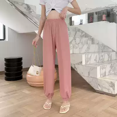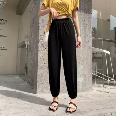 Gray sweatpants women's summer loose beam feet thin nine-point anti-mosquito pants spring and autumn small Harun lantern sweatpants