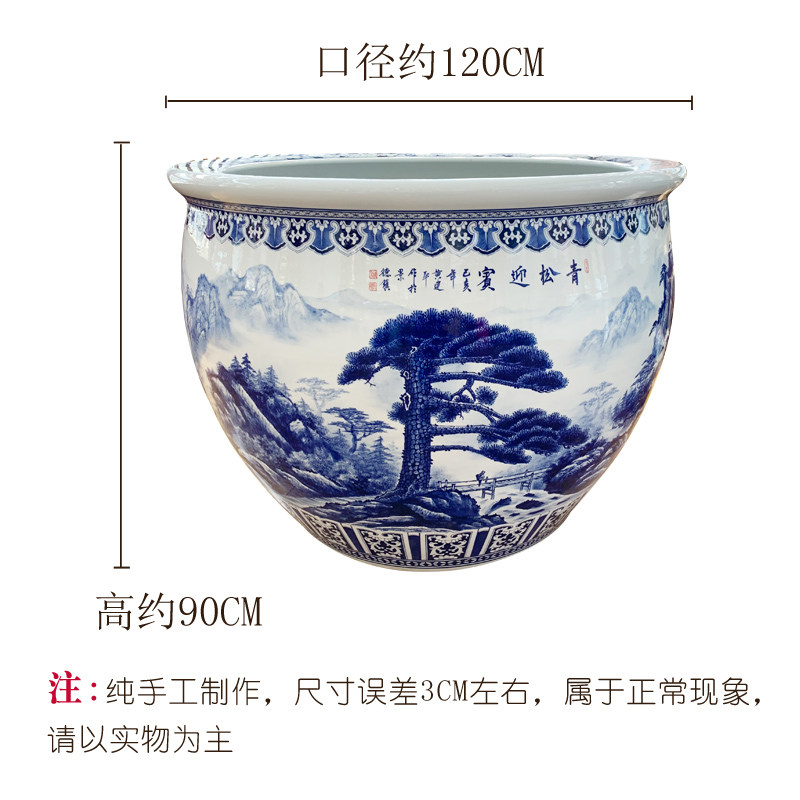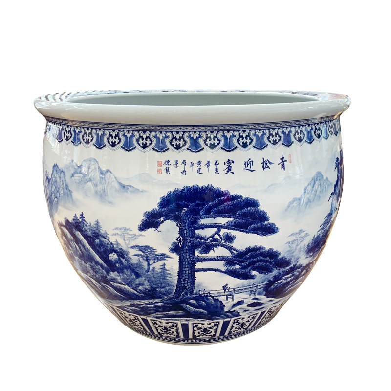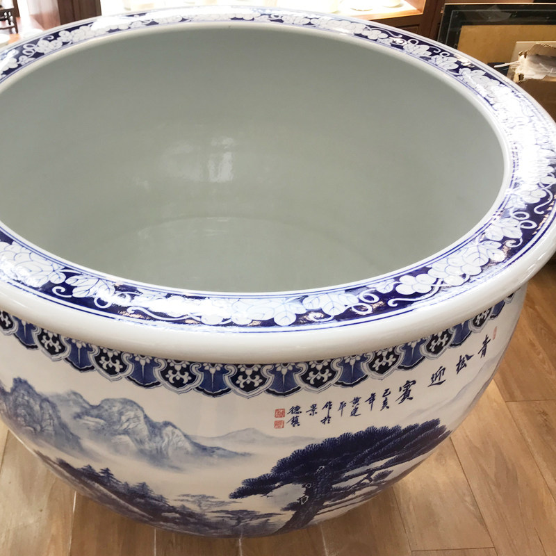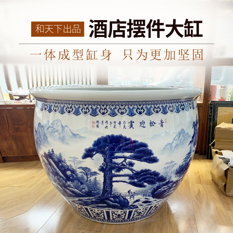 Jingdezhen ceramic large tank fish tank turtle water lily tank carving large extra-large living room blue and white water tank goldfish tank