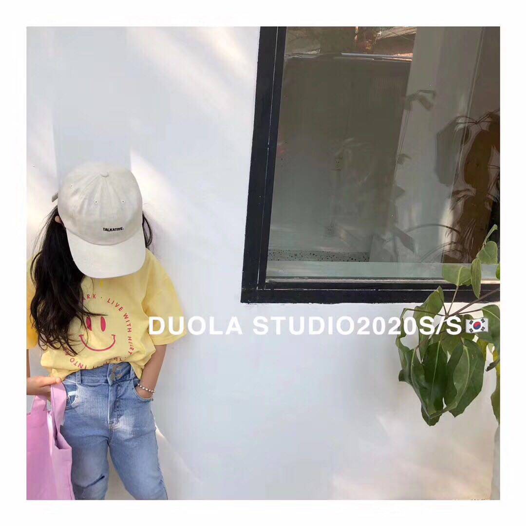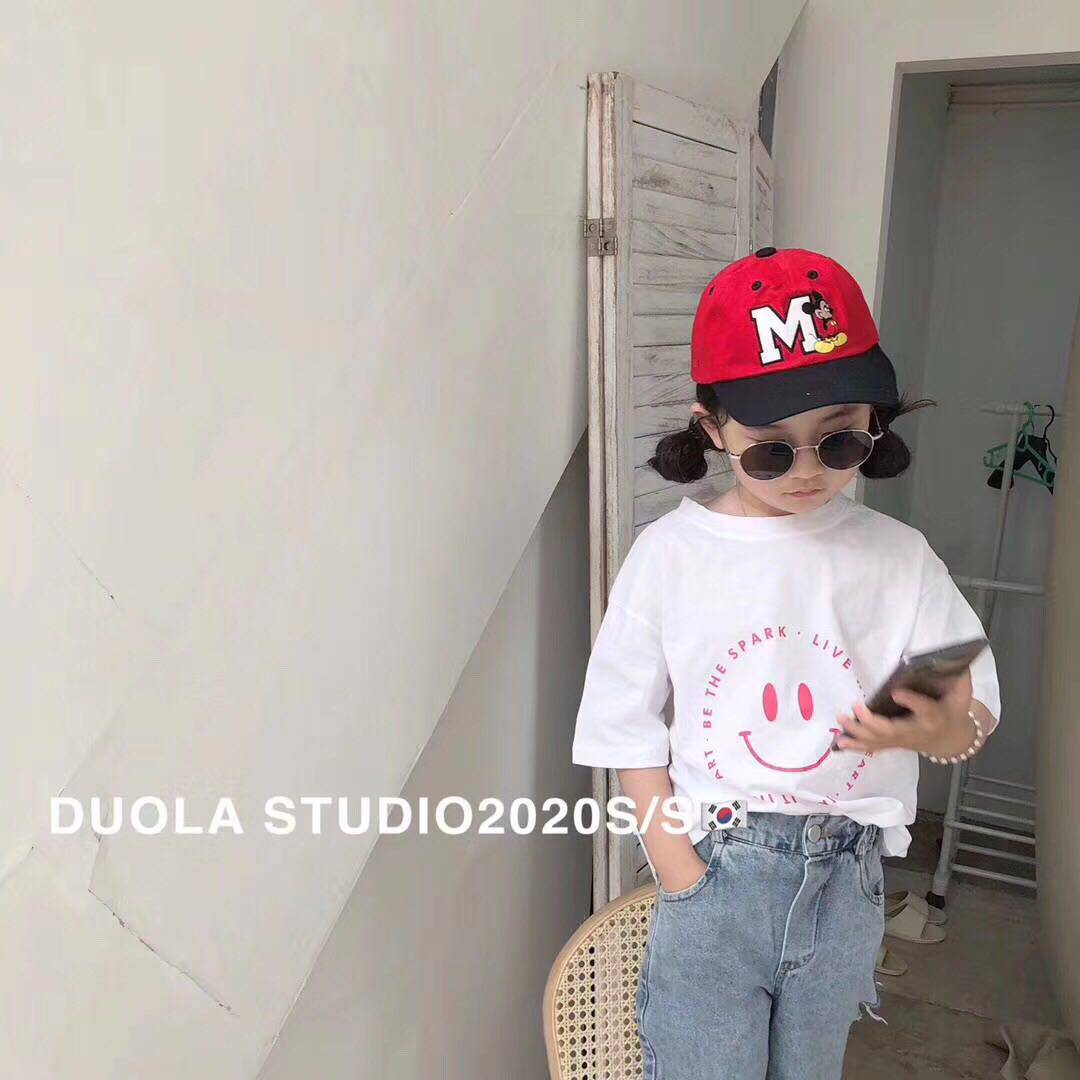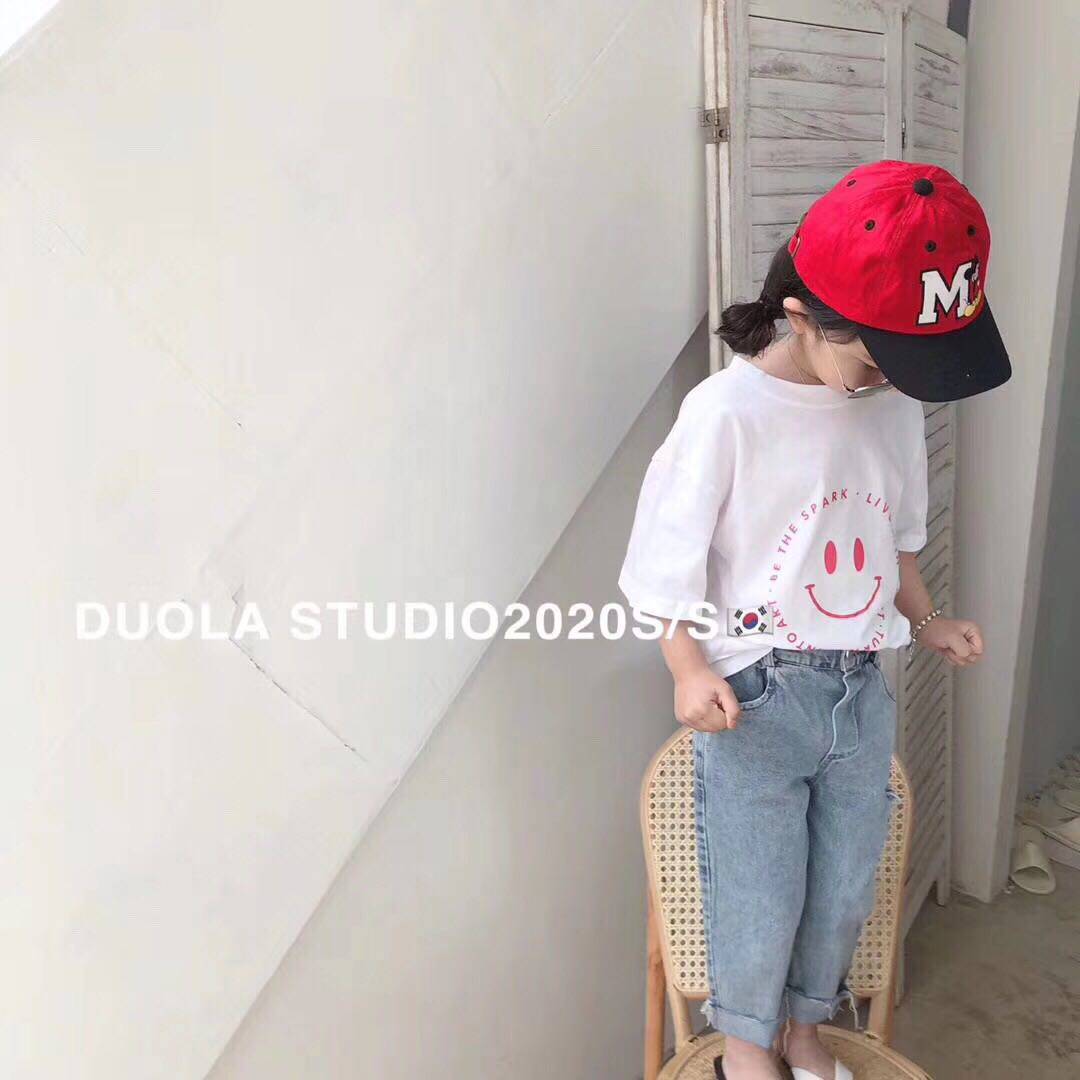 Xuan baby Korean children's clothing 2020 summer new men and women smiley letter T-shirt children pure cotton round neck short sleeve