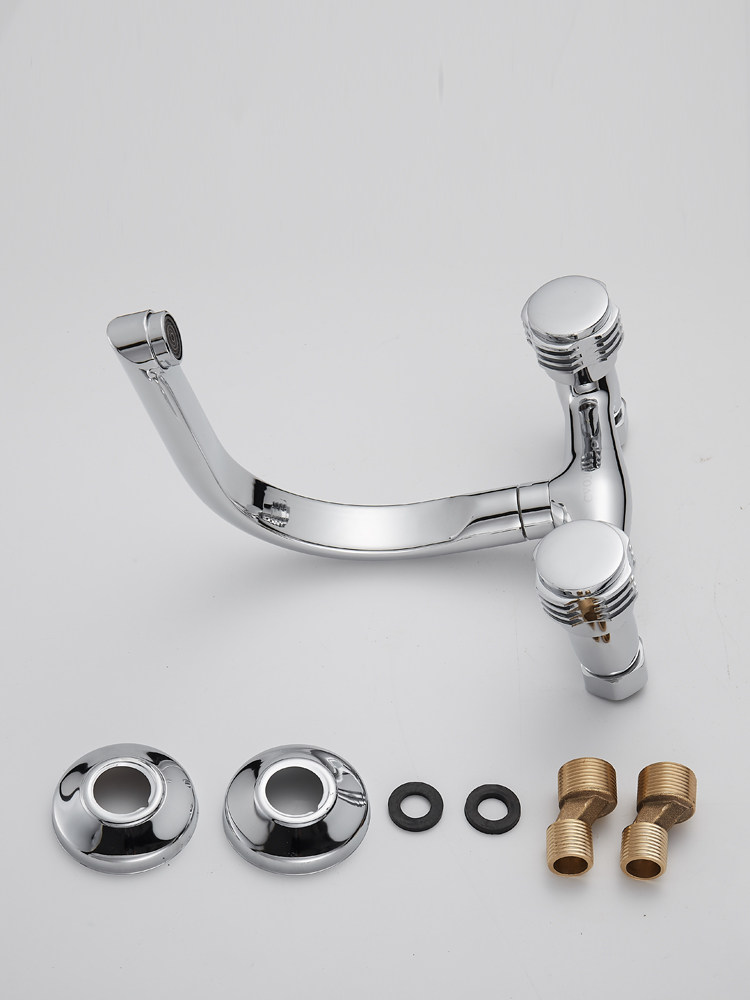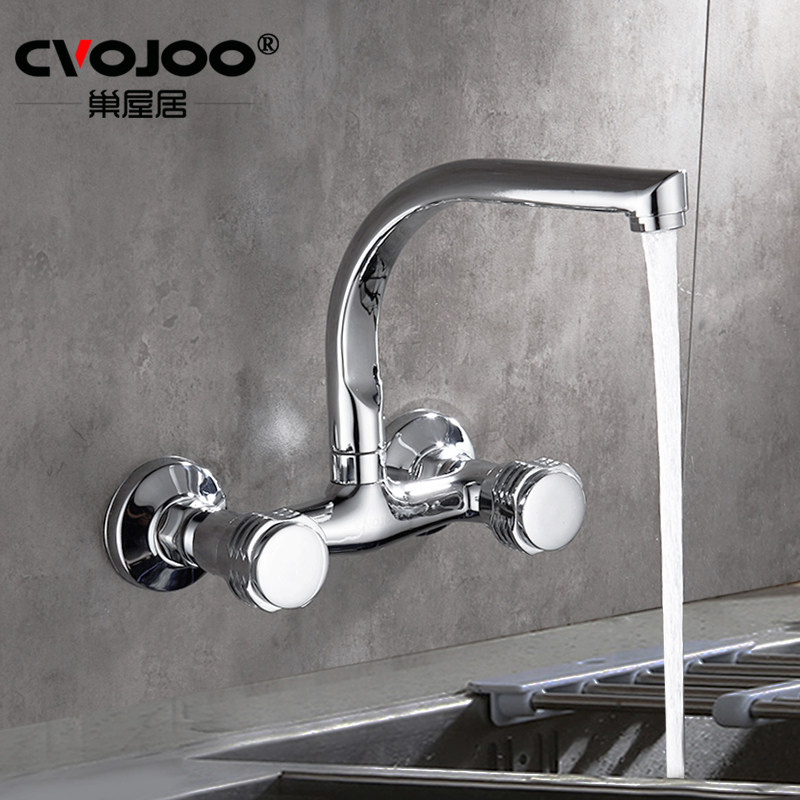 In-wall kitchen faucet Copper hot and cold wash basin faucet water nozzle double control open out of the water double hole mixing valve