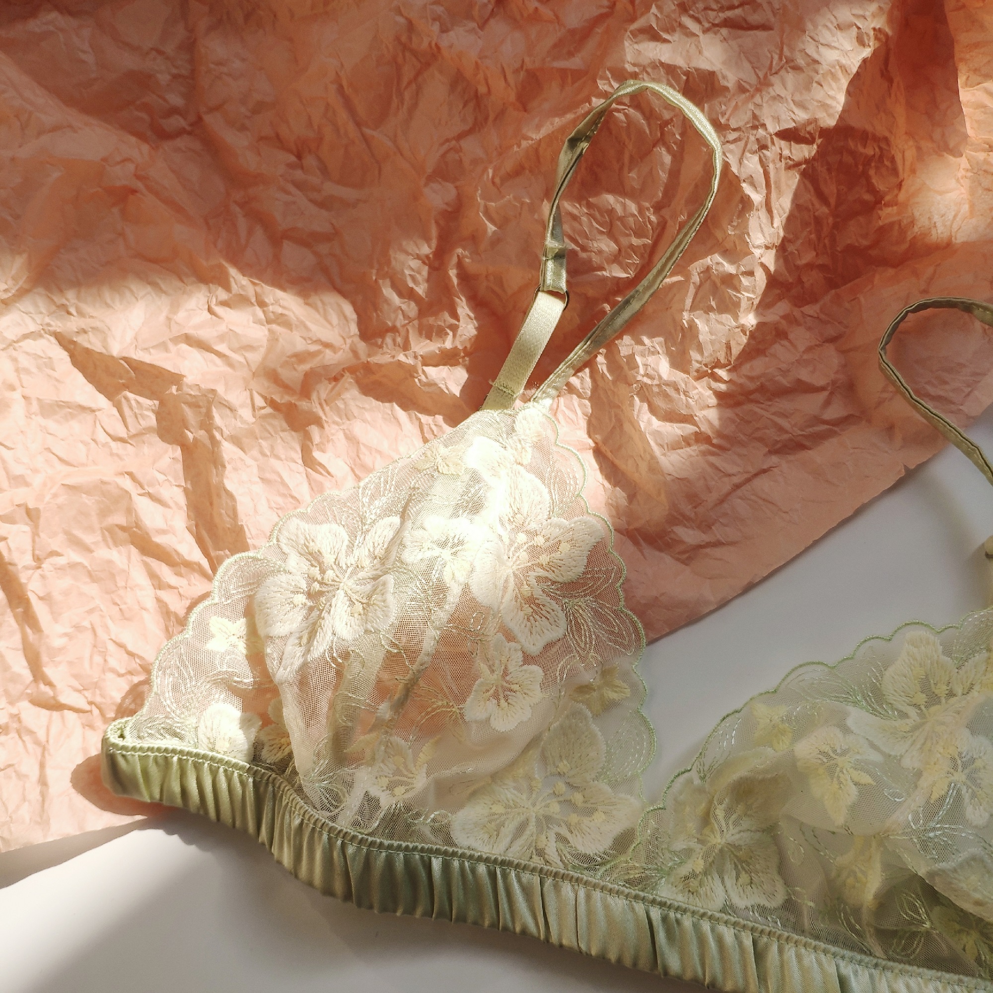 (S T) Fragrance woman Sexy lingerie woman No steel ring High quality flower embroidered spring and summer underwear suit