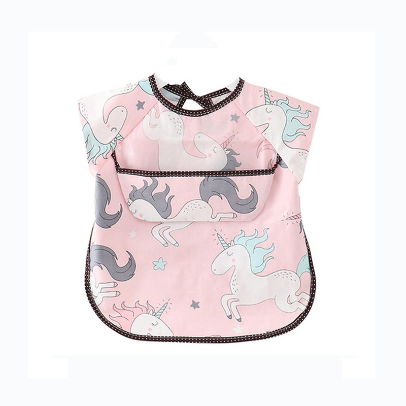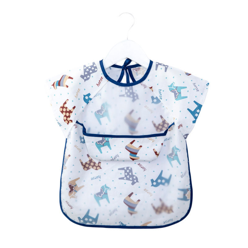 Children's bib waterproof short sleeves Anti-wear baby Eating Clothes Apron Pure Cotton Spring Summer Hood Clothes Baby bib