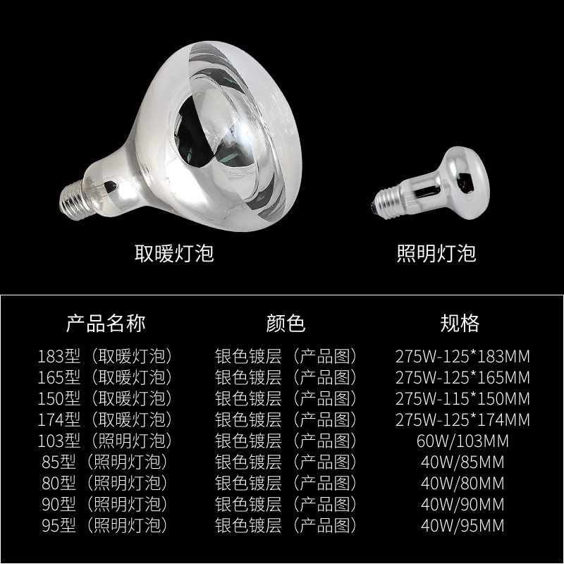 Type 85 lighting bulb 165 Type of heating bulb Type 174 Heating bulb 90 Type of lighting bulb 103 Type of lighting bulb 95 Type of lighting bulb 150 Type of heating light bulb 183 Type of heating lamp