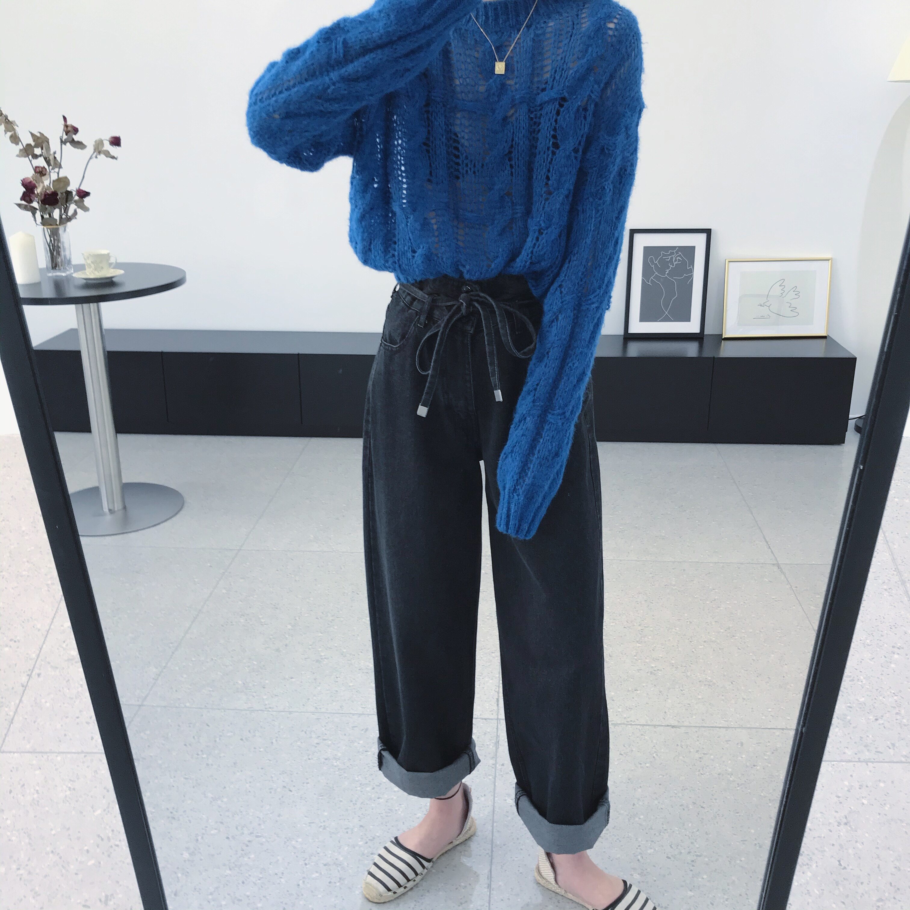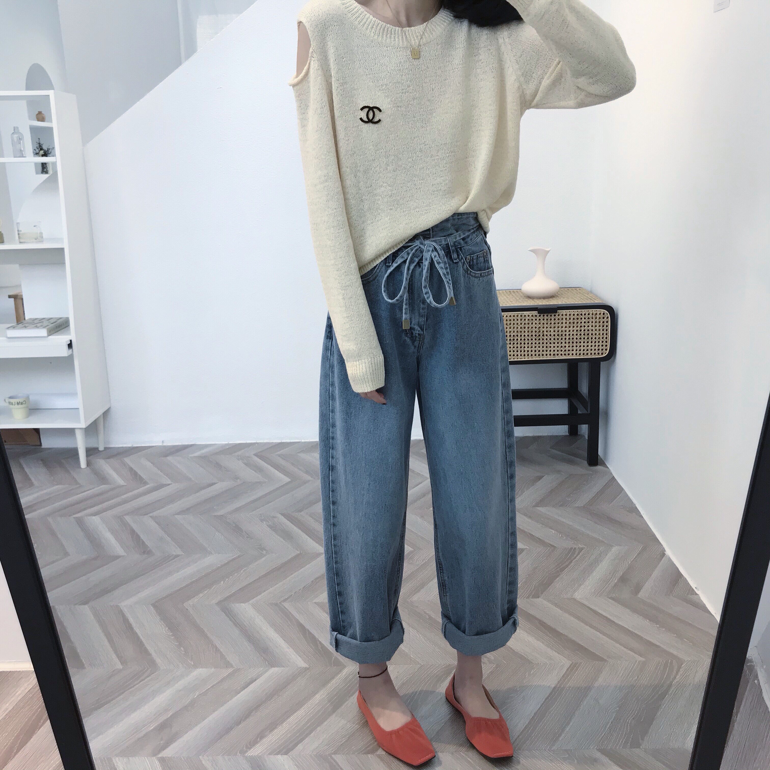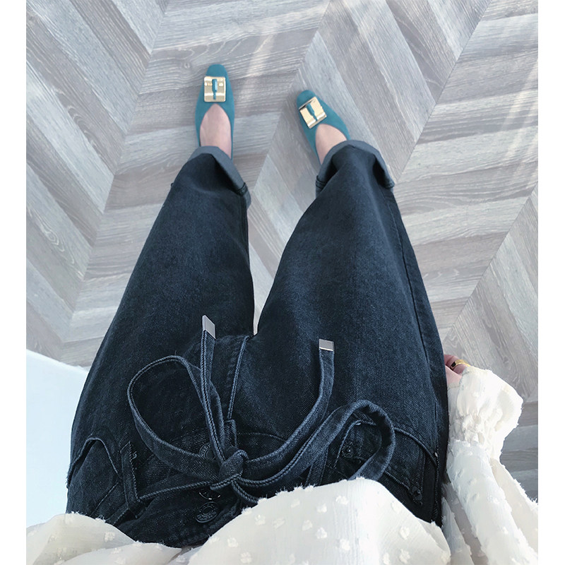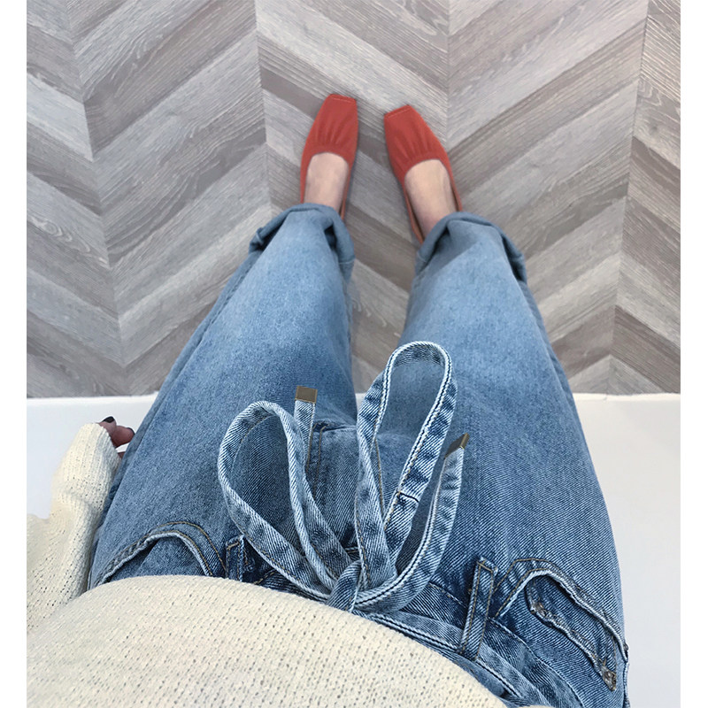 Dameng spring and summer new spring and summer manpower B prepared effortlessly fashionable ~ lace-up high-waisted jeans