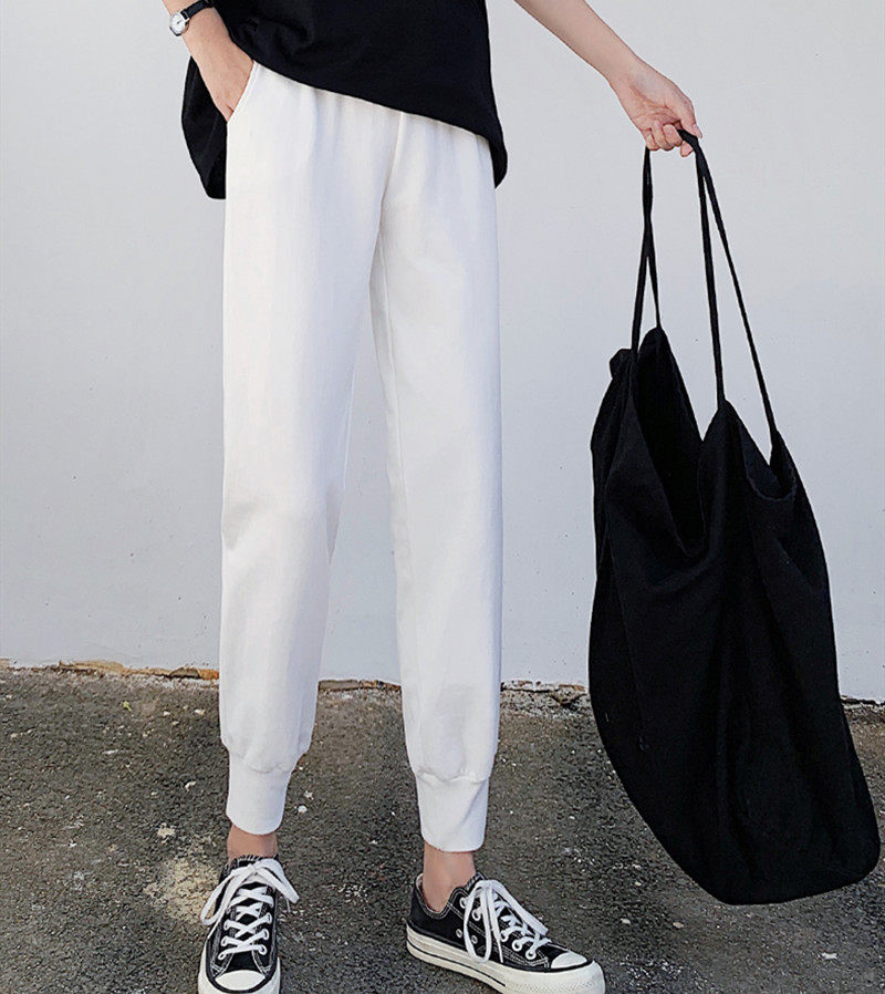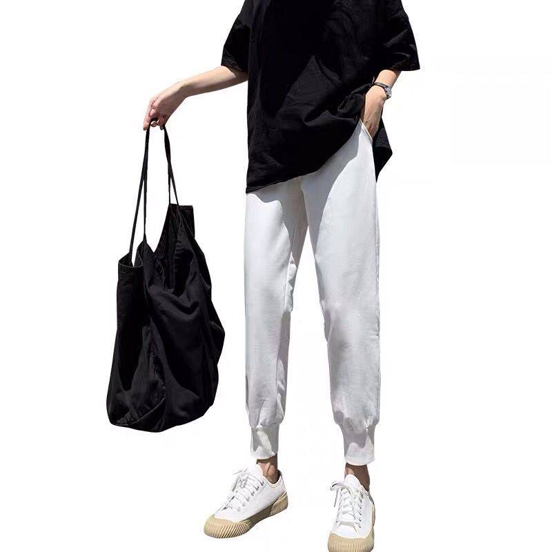 Japan SLY sweatpants female ins tide loose drawstring leg slacks summer thin section small foot sweatpants show thin nine points