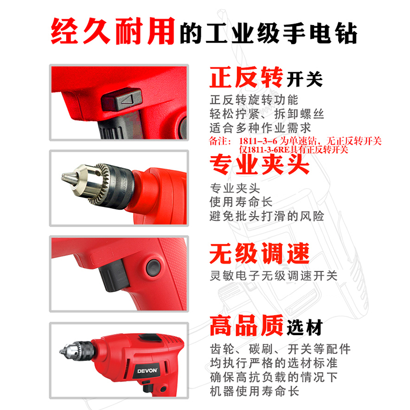 Great 6mm electric drill hand home multifunction electric drill drill flashlight gun drill electric screw driver power tool 1811